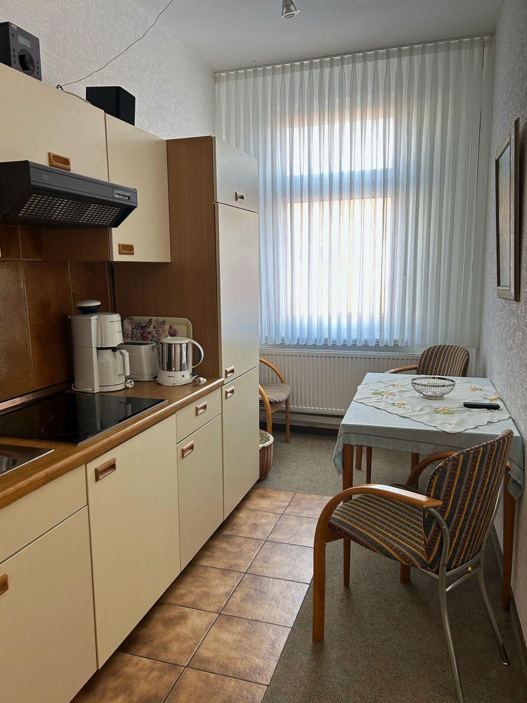 Die 2-Raum-Ferienwohnung im Obergeschoss verfügt über einen Wohn-/Schlafraum mit Doppelbett (Kabel-TV), Schlafzimmer mit Einzelbett und separater Küche mit Essplatz und Mikrowelle. Dusche/WC. NICHTRAUCHERWOHNUNG! WLAN vorhanden.