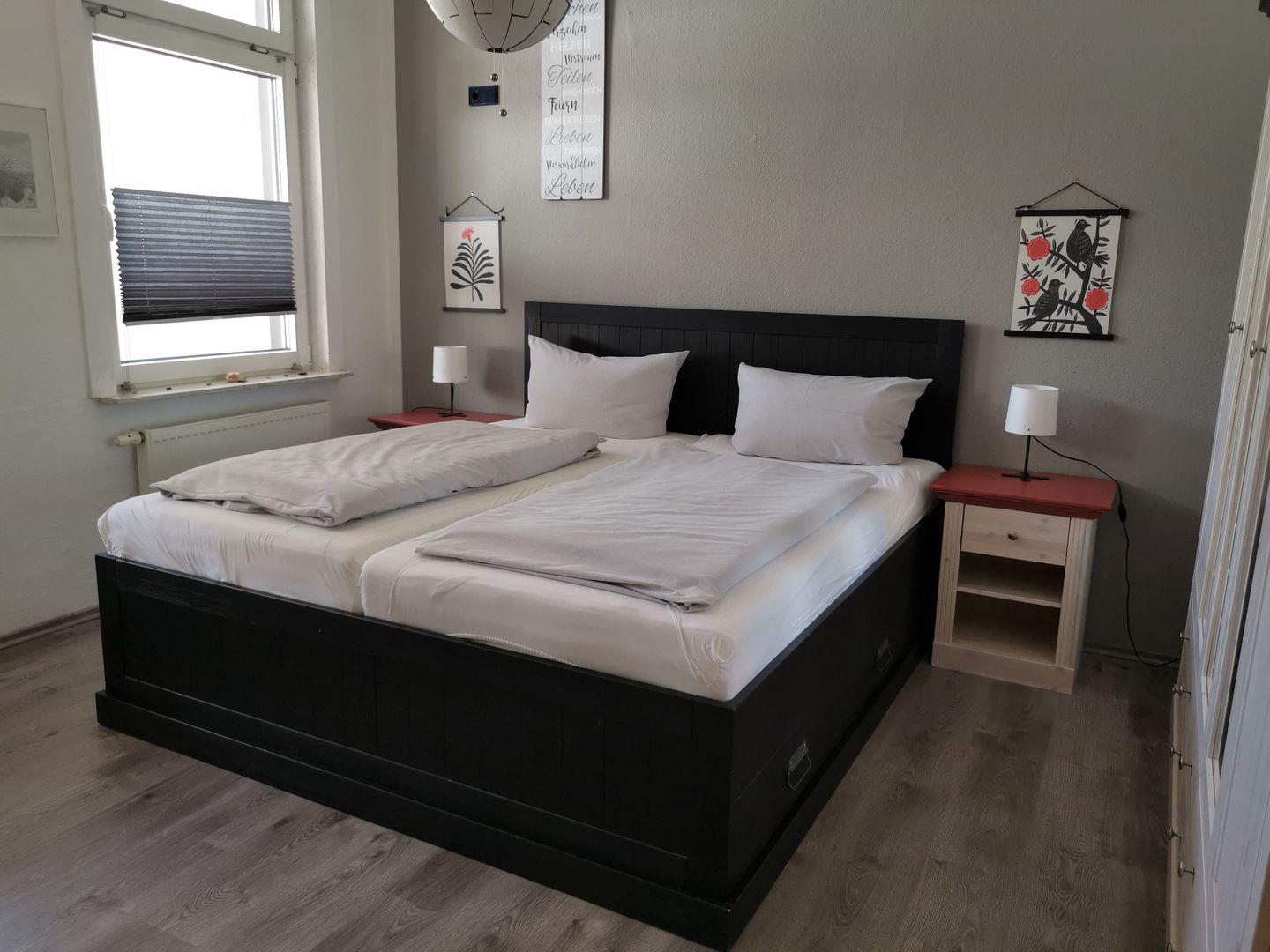 Die komfortable 3-Raum-Ferienwohnung im Erdgeschoss verfügt über ein separates Schlafzimmer mit Doppelbett, ein weiteres Schlafzimmer mit Hochbett für zwei