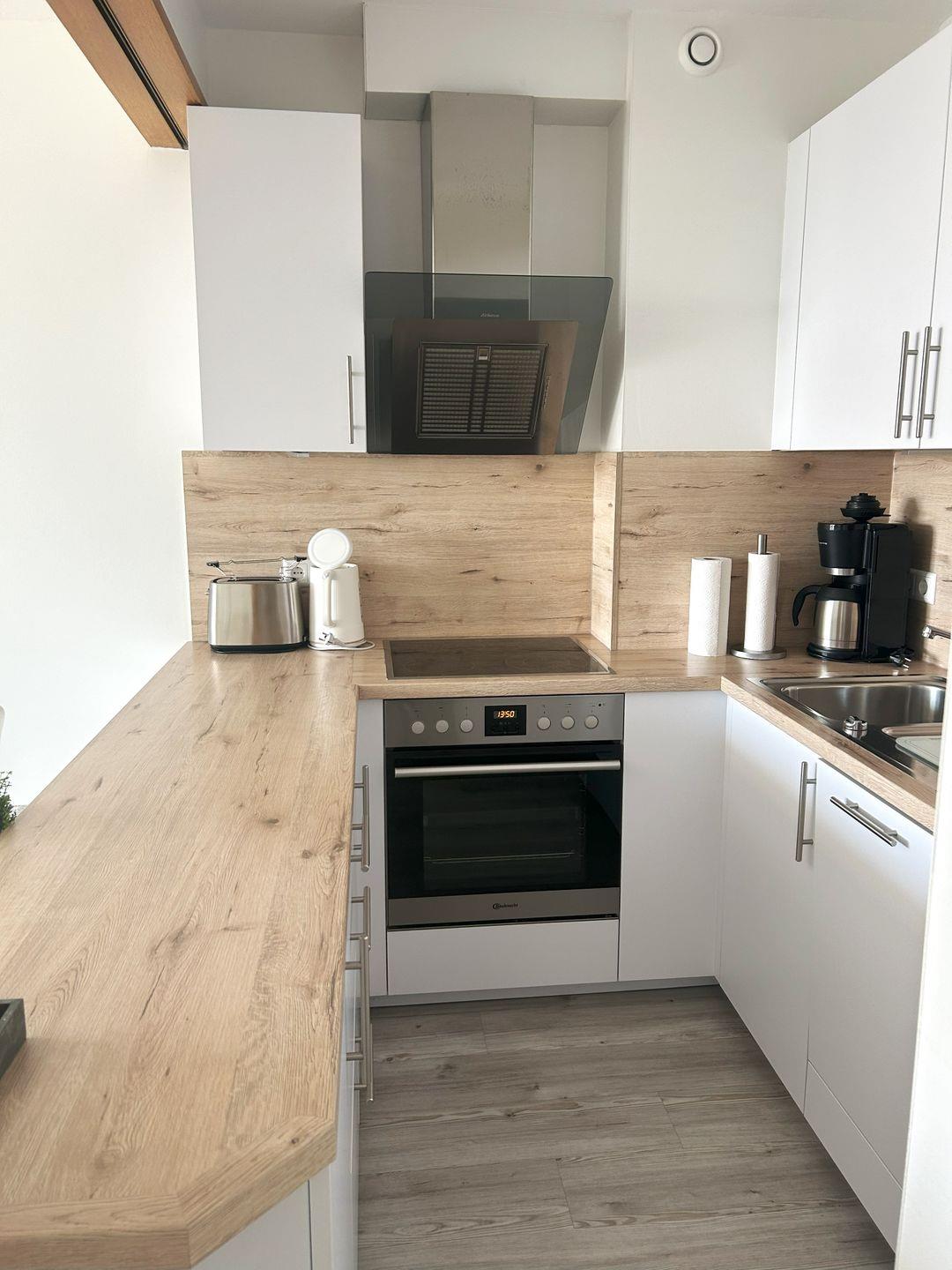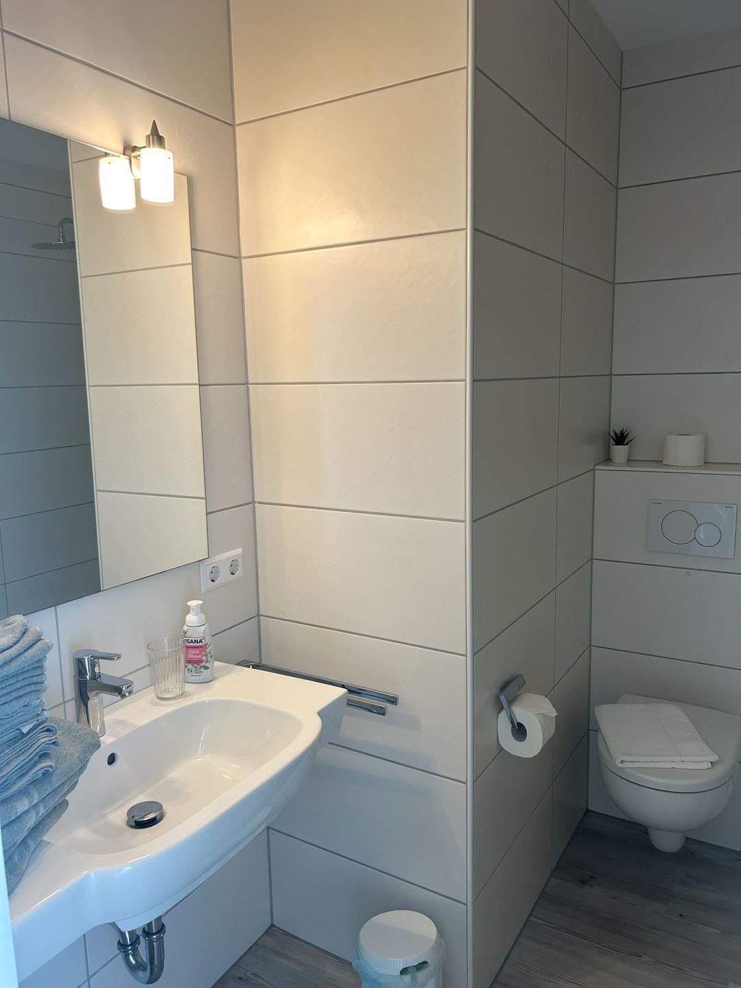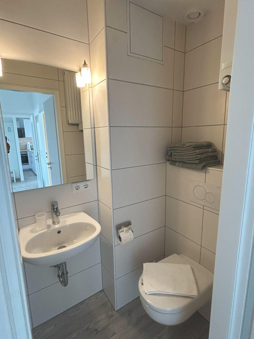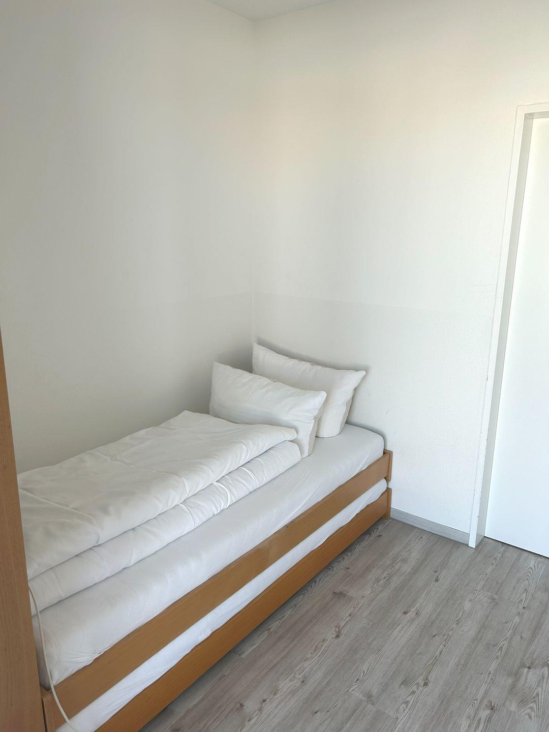 Die frisch renovierte Wohnung besteht aus einem Wohnzimmer mit offener Küche (Geschirrspüler, Backofen, Gefrierfach, Ceranfeld) und Zugang zum großen Balkon mit direktem Meerblick, einem Schlafzimmer mit Boxspringbett (Duschbad mit WC en suite), welches ebenfalls Zugang zum Meerblick-Balkon bietet, einem Schlafzimmer mit Etagenbett (90x190cm) und einem Schlafzimmer mit Stapelbett (90x190cm). Zusätzliches Duschbad mit WC vorhanden. Waschmaschine-/Trockner gegen Gebühr im gemeinschaftlichen Hauswirtschaftsraum. Nichtraucherwohnung.