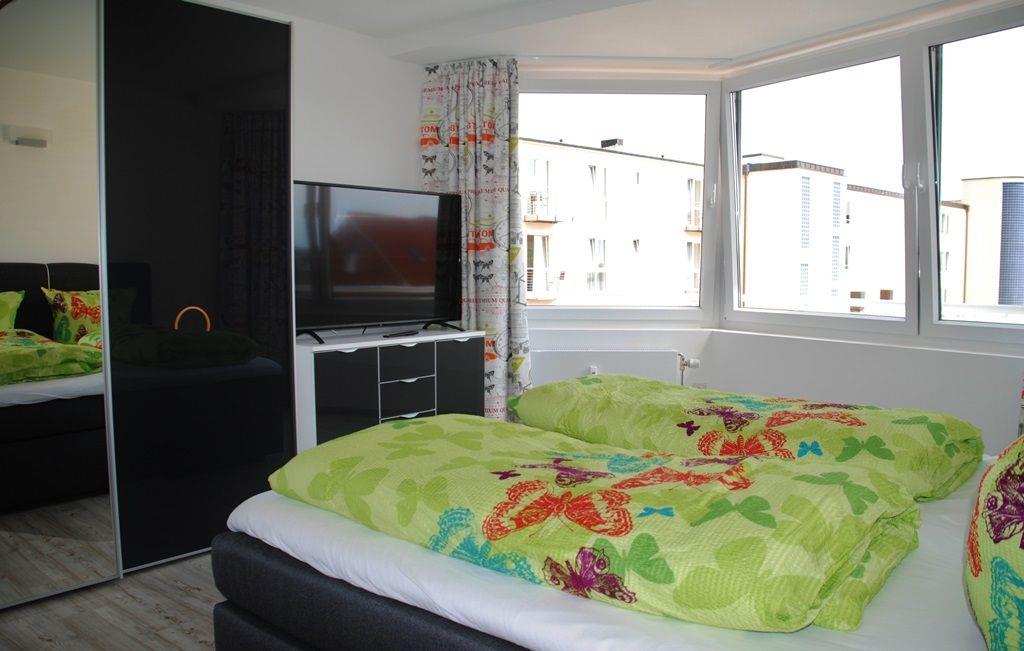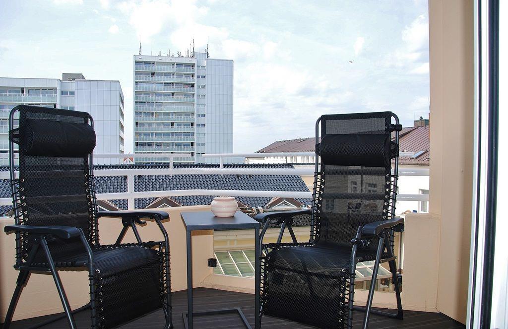 Das 2-Raum-Appartement in der 2. Etage, komplett renoviert, verteilt sich über mehrere Ebenen für 2 Personen. Es verfügt über ein Schlafzimmer mit Doppelbett und Kabel-TV, einen Wohnraum mit Küchenzeile sowie einen Balkon mit seitlicher Seesicht und ein Badezimmer mit Dusche/WC. Keine Haustiere. NICHTRAUCHER!