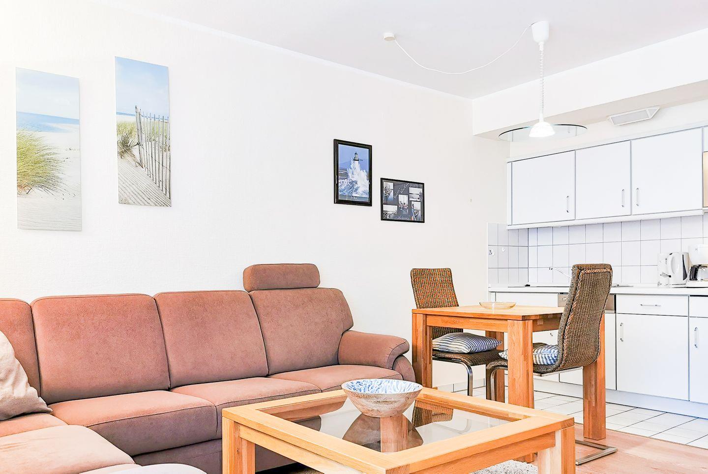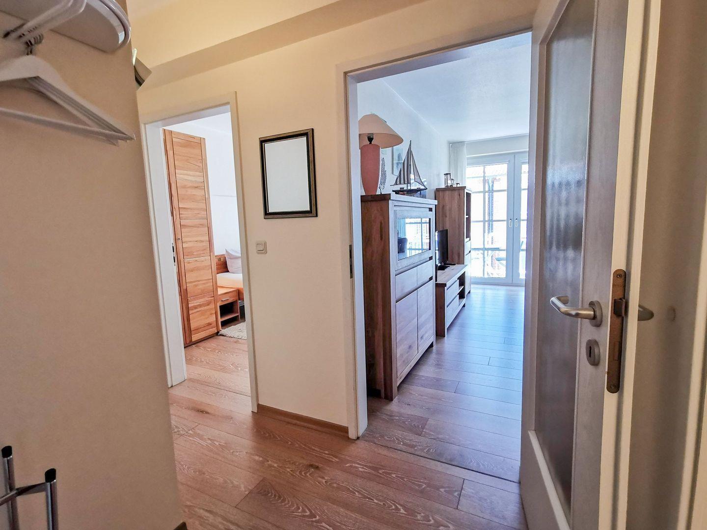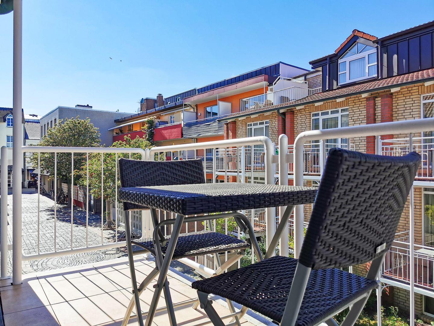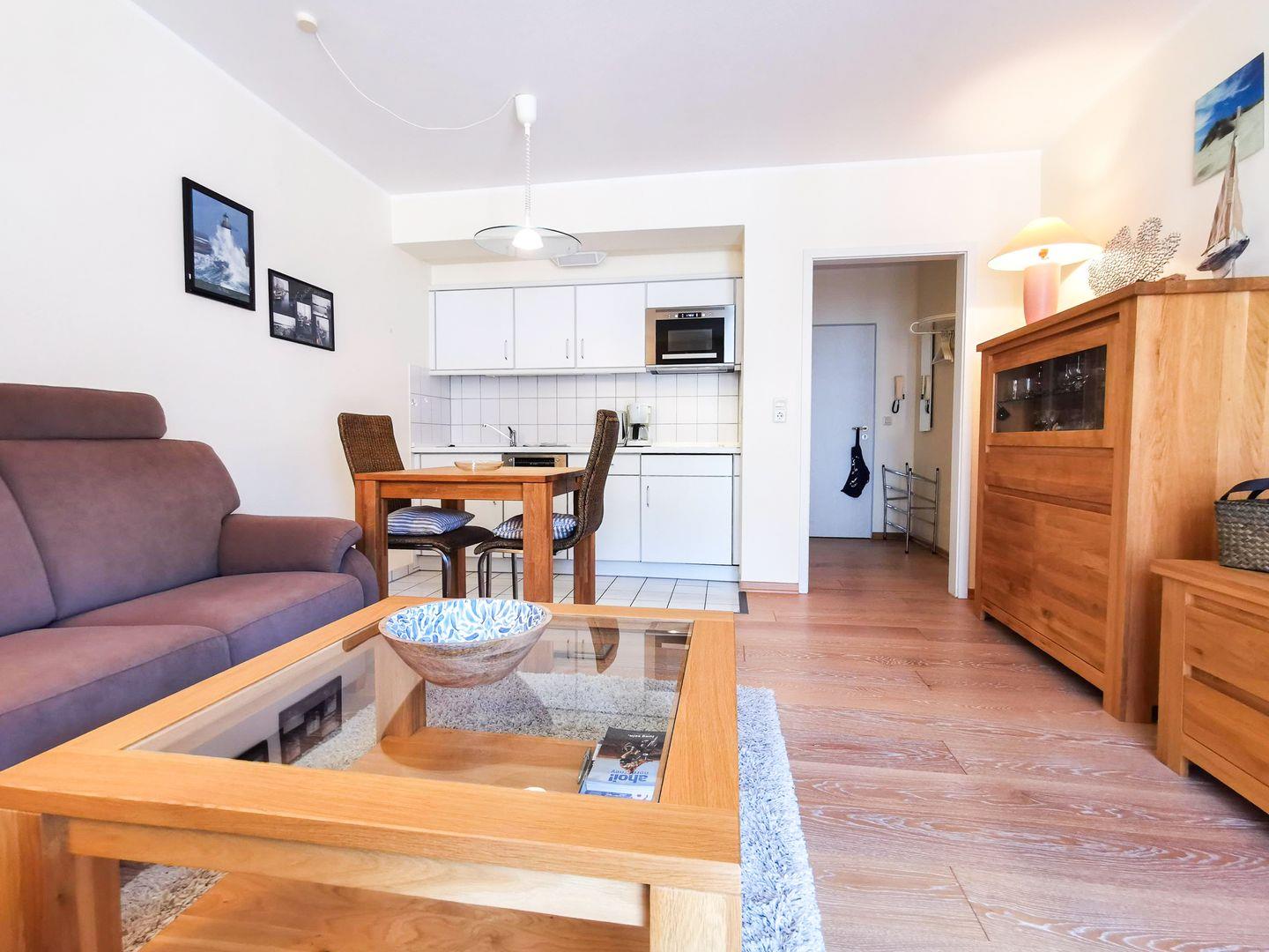die Ferienwohnung verfügt über ein separates Schlafzimmer mit Doppelbett und einen Wohnraum mit voll ausgestatteter Küchenzeile, Essplatz für 2 Personen und Sofaecke. Der Balkon liegt zu einer ruhigen Nebenstraße raus und ist von beiden Räumen zu betreten. Badezimmer mit Dusche/WC. Kurplatz mit Conversationshaus, Bäcker und Geschäfte sind "um die Ecke" ganz schnell zu erreichen.