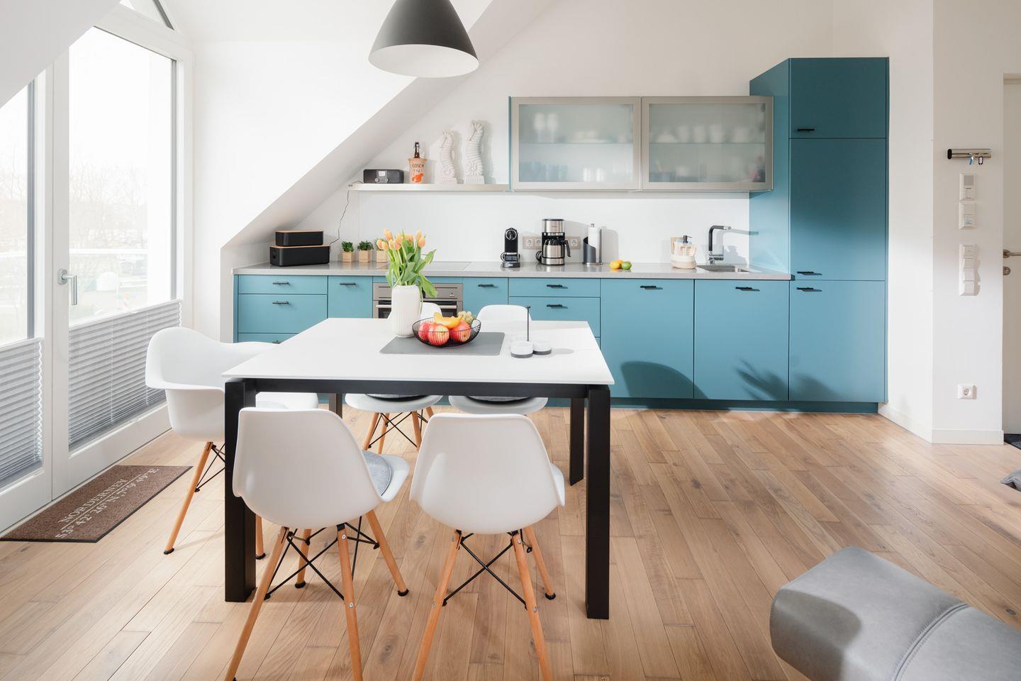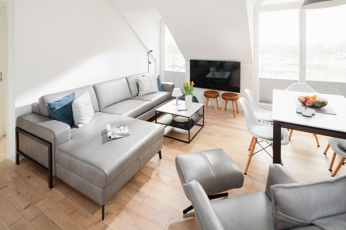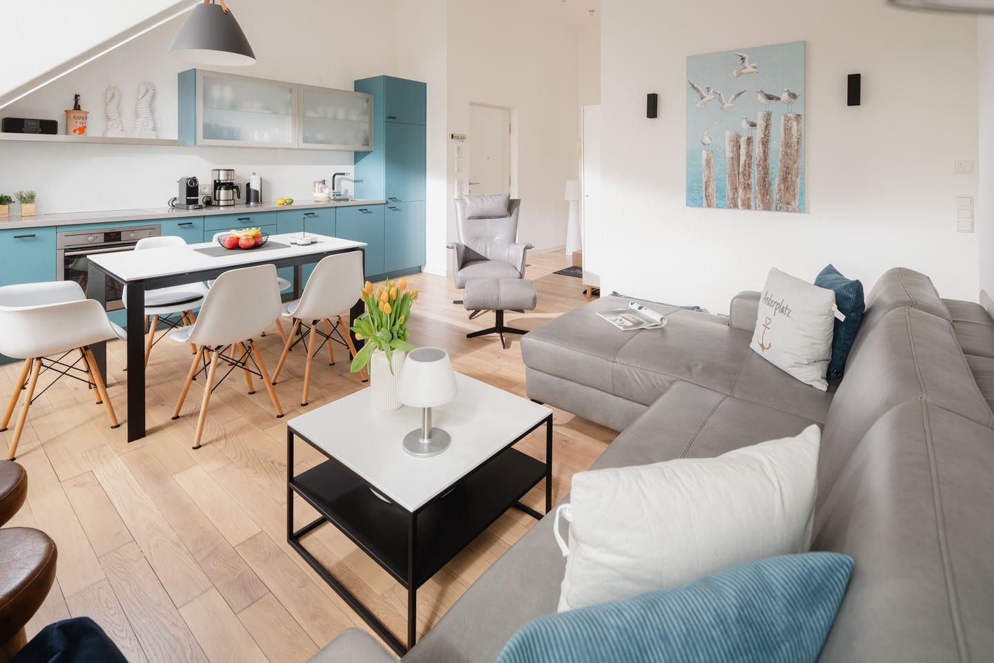 Neue Möbel und der moderne Charme der Wohnung laden auch bei stürmischem Nordseewetter zum Verweilen ein.