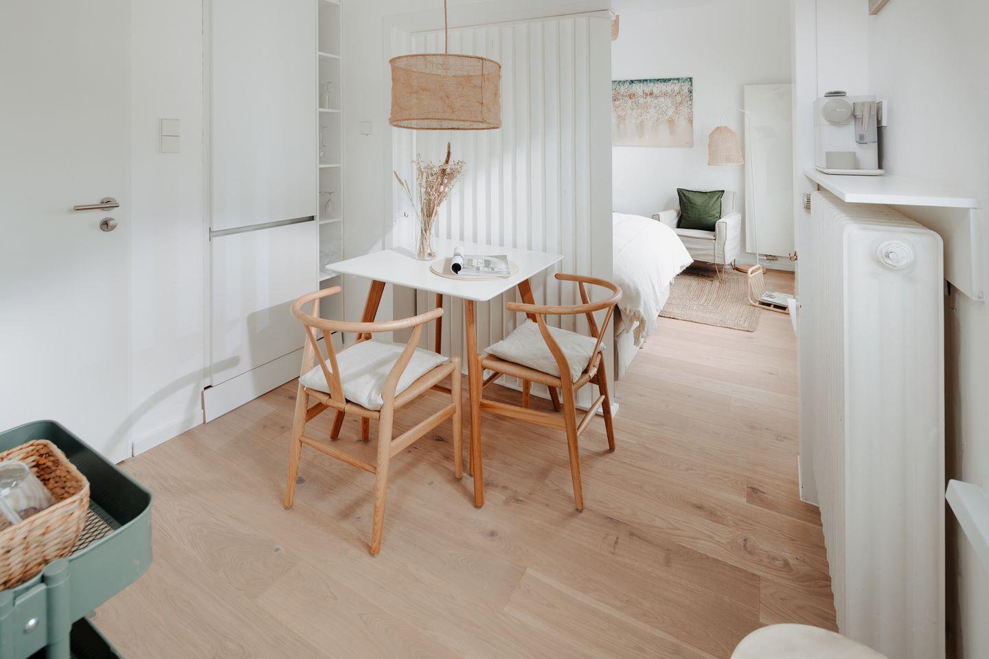 Der skandinavische Einrichtungsstil verleiht dem Apartment "Bude 7" eine besonders gemütliche Atmosphäre, in der man sich sofort wohlfühlt. Die Unterkunft bietet Platz für 1-2 Personen und ist natürlich hundefreundlich, damit auch Ihr geliebter Vierbeiner Teil des Inselabenteuers sein kann.