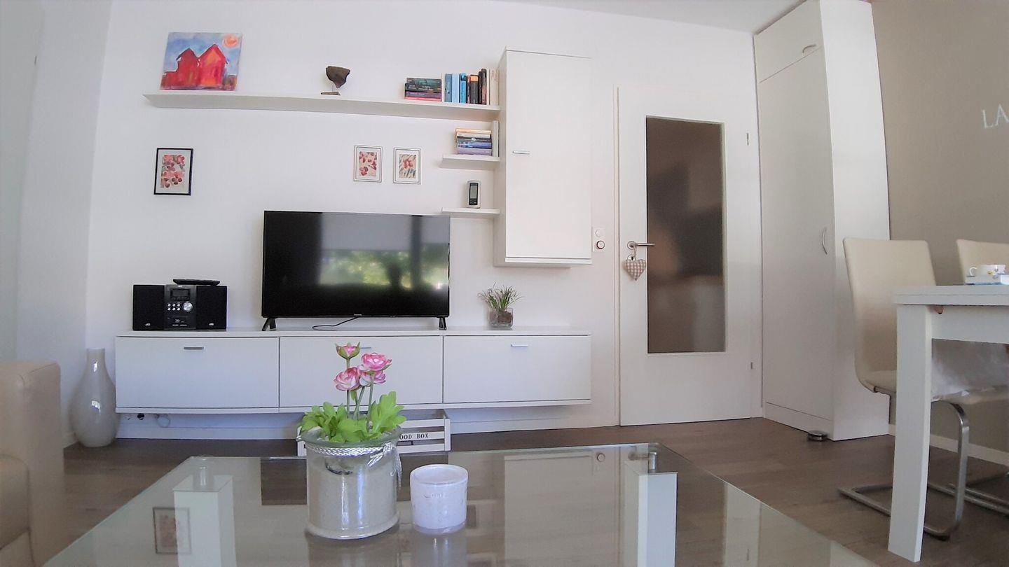 Helle, freundliche 2-Raum-Ferienwohnung in ruhiger Lage verfügt über ein separates Schlafzimmer mit Doppelbett (TV), Wohnraum mit Essbereich (TV, Schlafsofa für 1 Pers.)., komfortable Küche (Mikrowelle, Ceranfeld, Spülmaschine) sowie modernes Badezimmer mit Dusche (bodengleich) & WC. Als Highlight bietet die Wohnung zwei Terrassen, eine für morgens zum frühstücken sowie eine zum sonnen am Nachmittag. WLAN. NICHTRAUCHER!