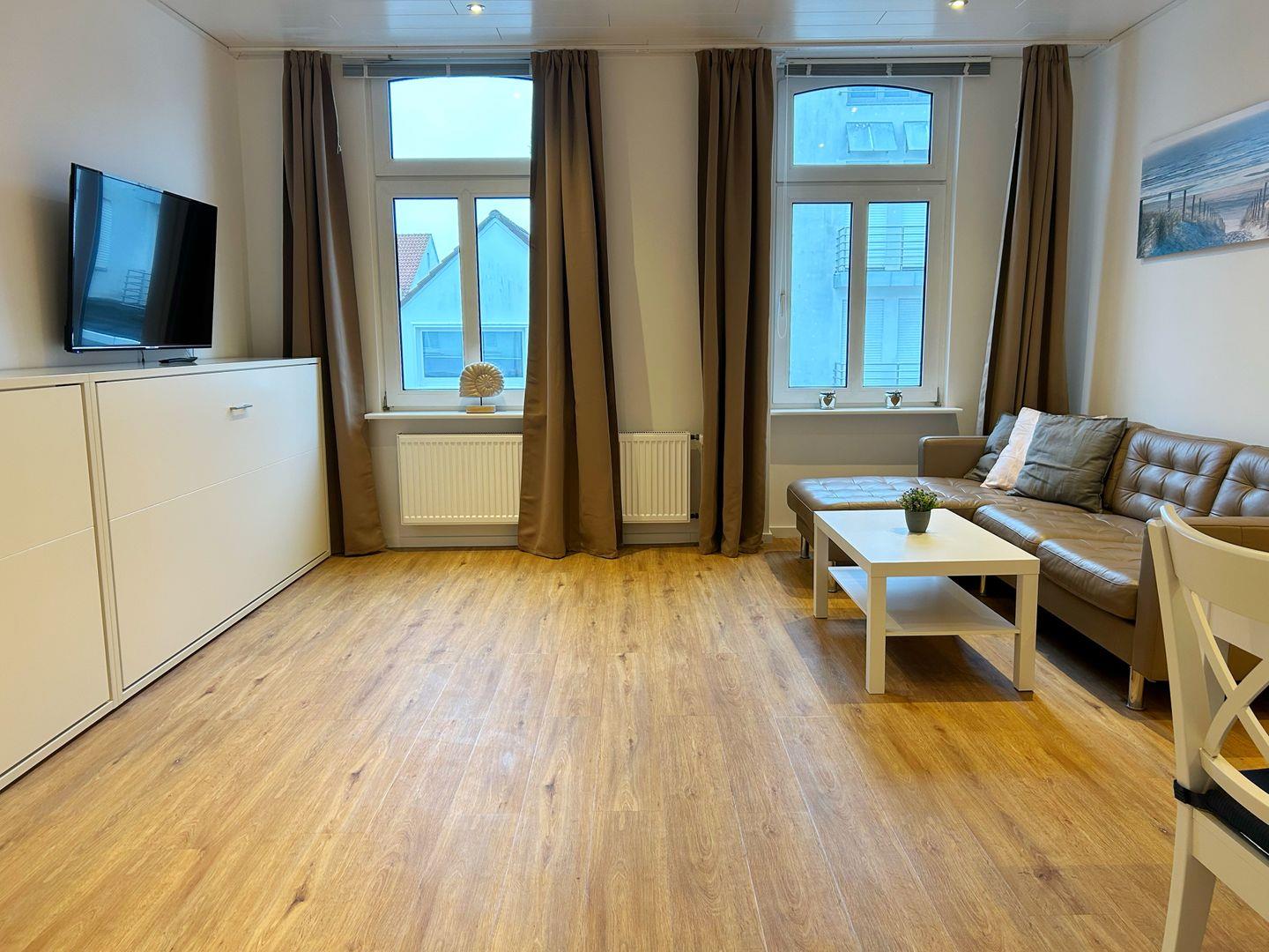 Die gemütliche 2-Raum-Ferienwohnung im 1. Obergeschoss begrüßt Sie in zentraler Lage mit einer angenehmen Wohlfühlatmosphäre. Der großzügige, renovierte Wohn-/Schlafraum bietet zwei praktische Schrankbetten, eine einladende Sofaecke mit TV sowie eine moderne Küchenzeile mit Backofen, Ceranfeld und Spülmaschine. Der angrenzende Essbereich lädt zu gemeinsamen Mahlzeiten ein. Vom Flur aus erreichen Sie das separate Schlafzimmer mit komfortablem Doppelbett und TV sowie das neu renovierte Badezimmer mit Dusche/WC. Kostenfreies WLAN. Nichtraucherwohnung.