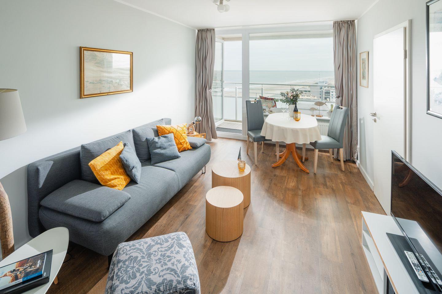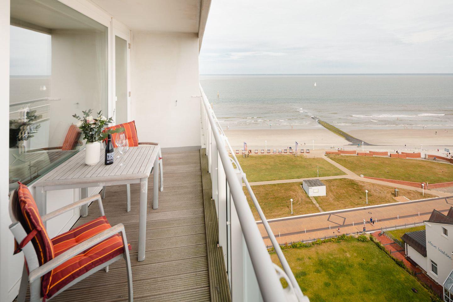 Die voll ausgestattete Küche lässt keine Wünsche offen. Hier finden Sie alles, was Sie benötigen, um Ihre Lieblingsgerichte zuzubereiten. Ob Backofen, Spülmaschine, Mikrowelle oder Kaffeemaschine – alle modernen Küchengeräte stehen Ihnen zur Verfügung. Nach einem langen Strandtag können Sie sich auf dem Balkon entspannen und die Aussicht über der Nordsee genießen. Eine Sonnenliege lädt dazu ein, die frische Seeluft und die ruhige Atmosphäre zu genießen. Auf dem Balkon befinden sich eine Sitzecke und ein Deckchair. Das moderne Bad ist mit einer bodentiefen Regendusche ausgestattet.