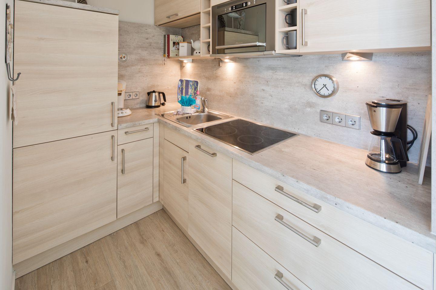 Das moderne Badezimmer verfügt über eine Dusche sowie WC/Bidet und bietet Ihnen eine angenehme Wohlfühlatmosphäre. Die schöne Küchenzeile ist mit einer Geschirrspülmaschine, einer Filterkaffeemaschine und einer Senseo-Pad-Maschine ausgestattet. Hier können Sie sich ganz nach Ihren Vorlieben kulinarisch verwöhnen.