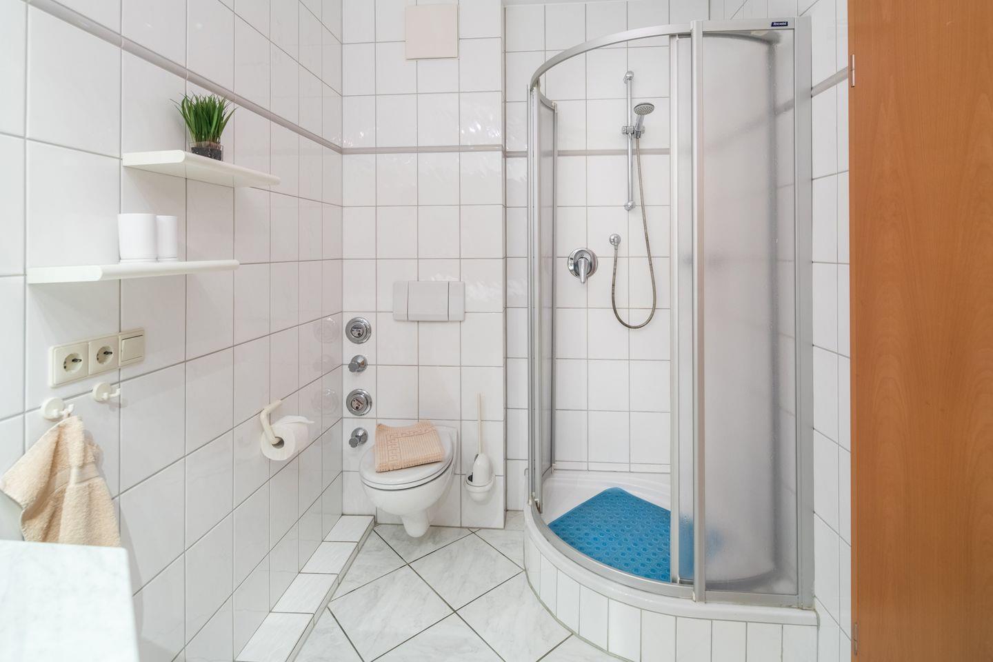 Das separate Schlafzimmer verfügt über ein gemütliches Doppelbett und einen Kleiderschrank. Sichtschutz am Fenster sorgt für angenehme Dunkelheit und erholsame Nächte. Das Duschbad bietet Komfort und ist mit einem Föhn ausgestattet. Handtücher, Bettwäsche und die Endreinigung sind inklusive.