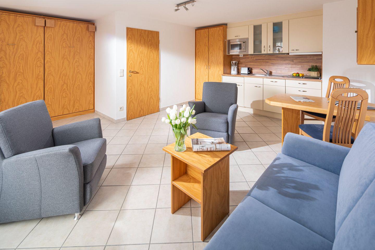 Herzlich willkommen in der Ferienwohnung Kogge17 im Haus "Die Kogge" auf Norderney! Diese helle Einraumwohnung im 3. Obergeschoss ist bequem per Fahrstuhl erreichbar und bietet einen großzügigen Balkon mit Blick über den Innenhof auf Norderney.