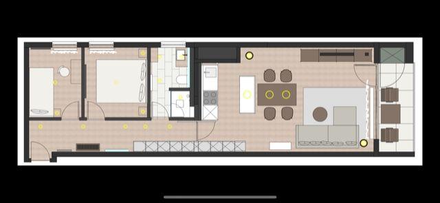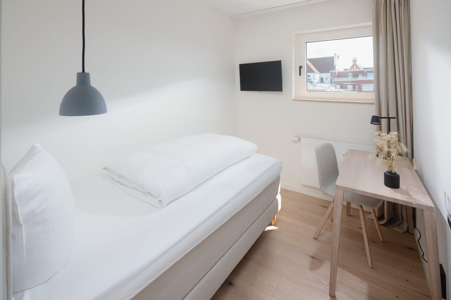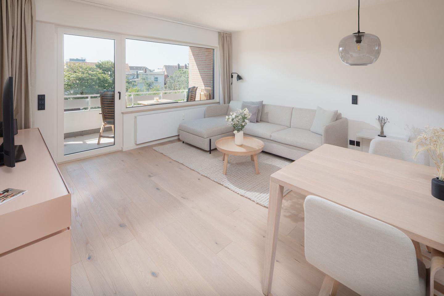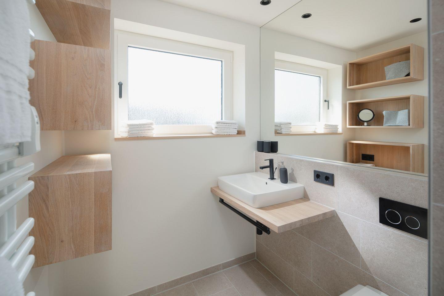 Es gibt insgesamt 2 Schlafzimmer mit 3 Betten (1 Doppelbett, 1 Einzelbett), ideal für Familien oder kleine Gruppen. Die Wohnung wurde mit Echtholzparkett ausgestattet. Beim Design der Wohnung wurde auf helle und natürliche Farben Wert gelegt. Das moderne Badezimmer verfügt über ein Außenfenster, was für eine gute Belüftungsmöglichkeit sorgt, und die Dusche wurde mit einer Regendusche ausgestattet. Die offene und moderne Wohnküche wurde mit einem Essbereich eingerichtet. Die Ferienwohnung verfügt über einen Südbalkon. Waschmaschine und Wäschetrockner befinden sich im Haus und stehen (für die gemeinschaftliche Nutzung gegen Gebühr) zur Verfügung, was besonders für längere Aufenthalte von Vorteil ist. Haustiere sind nicht erlaubt.