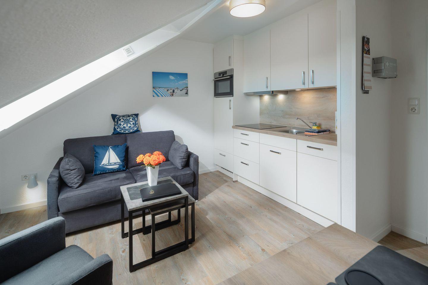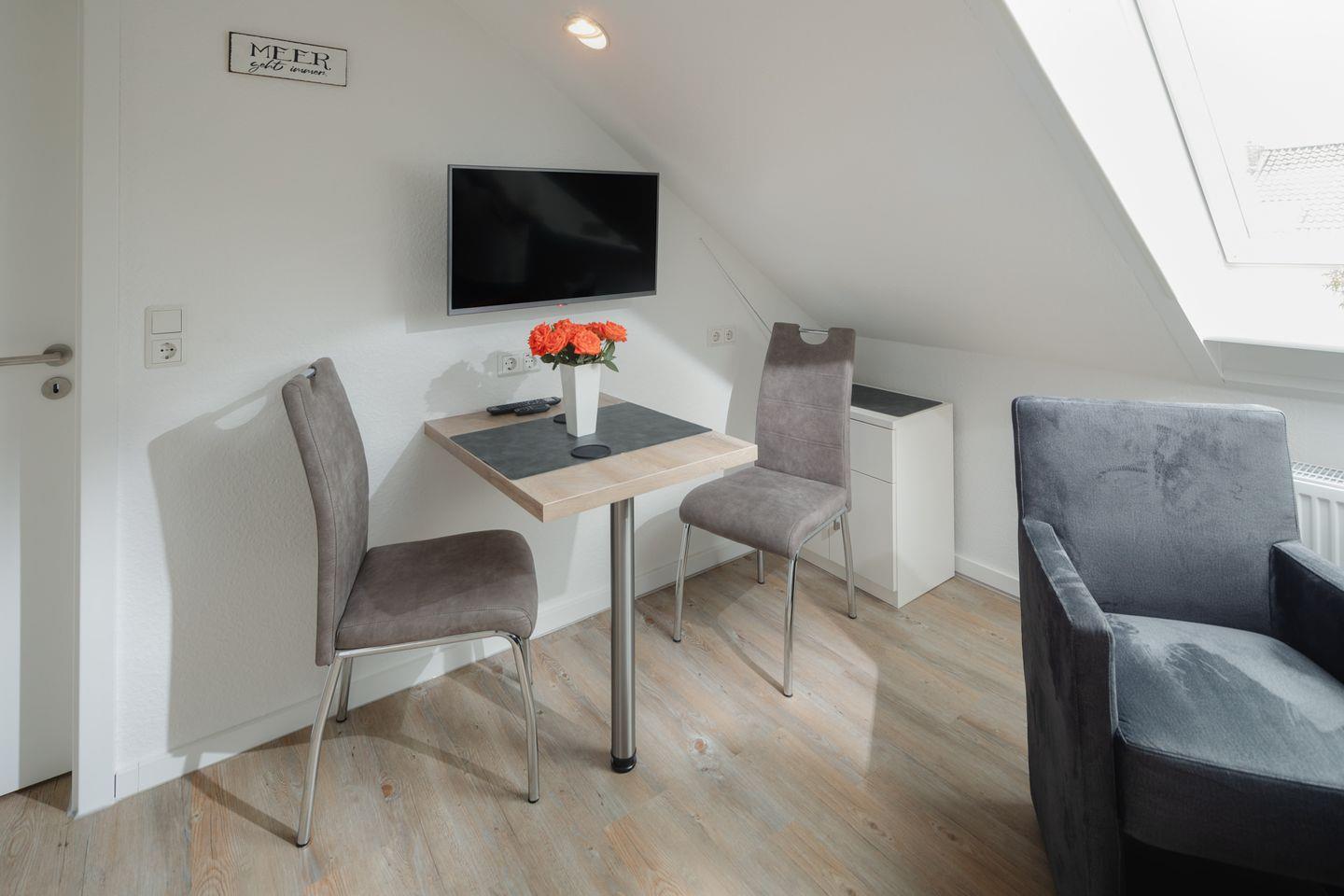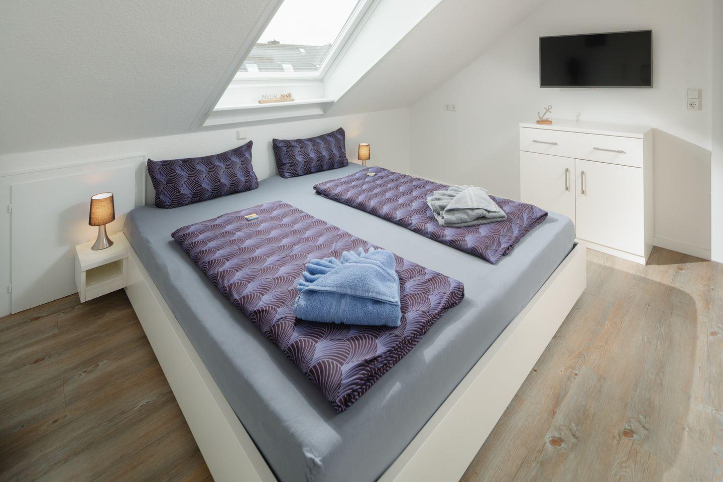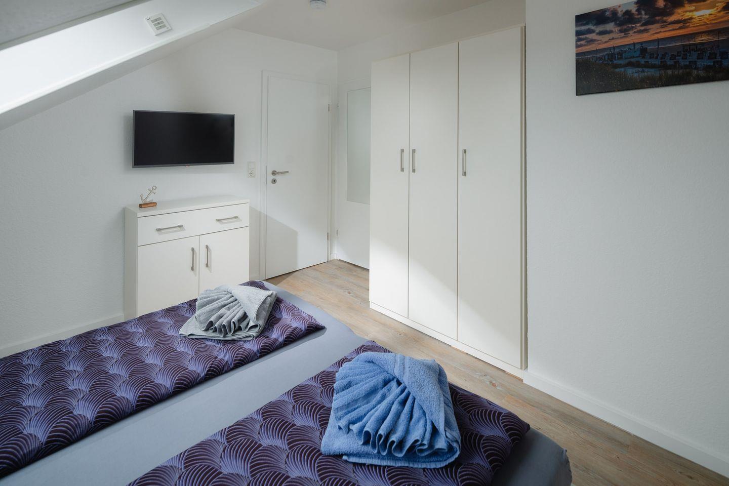 Gemütliche und helle 2-Raum-Ferienwohnung in ruhiger Sackgassenlage in der 2. Etage. Die Dachgeschosswohnung in einem Reihenendhaus befindet sich zusammen mit zwei weiteren Ferienwohnungen in unmittelbarer Nähe zum Strand und bietet Platz für 1-3 Personen und eventuell noch ein Kinderbett.