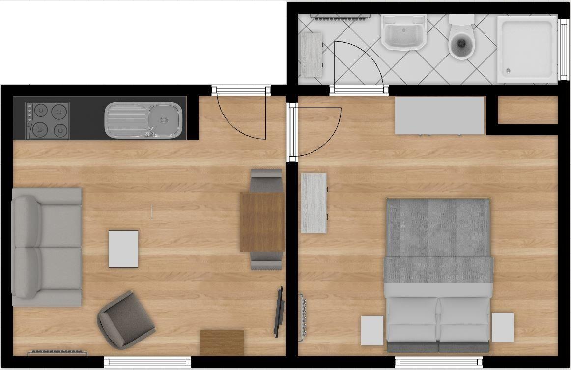 2-Raum-Wohnung Enna 1 befindet sich im Dachgeschoss des Hauses in der 2. Etage. Die Wohnung verfügt über 1 Schlafzimmer mit 180x200cm Doppelbett und 1 Wohnzimmer mit komplett ausgestatteter Küchenzeile (Backofen, Spülmaschine, 4-Platten Ceranfeld, Mikrowelle). Im Wohnraum befinden sich ein 2-Sitzer-Schlafsofa (zum Ausweichen oder für die 3. Person, echte Matratze 125x195cm), 1 Cocktailsessel sowie 1 Esstisch. Vom Schlafzimmer gelangen Sie ins Bad mit Dusche/WC. Alle Fenster verfügen über Verdunkelungsmöglichkeit. Kein Clubtourismus oder Gruppenreisen. Haustiere willkommen!