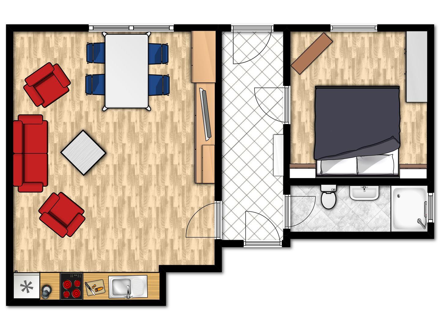 Modern eingerichtete 60 qm Ferienwohnung mit Terrasse in Süd-West-Lage