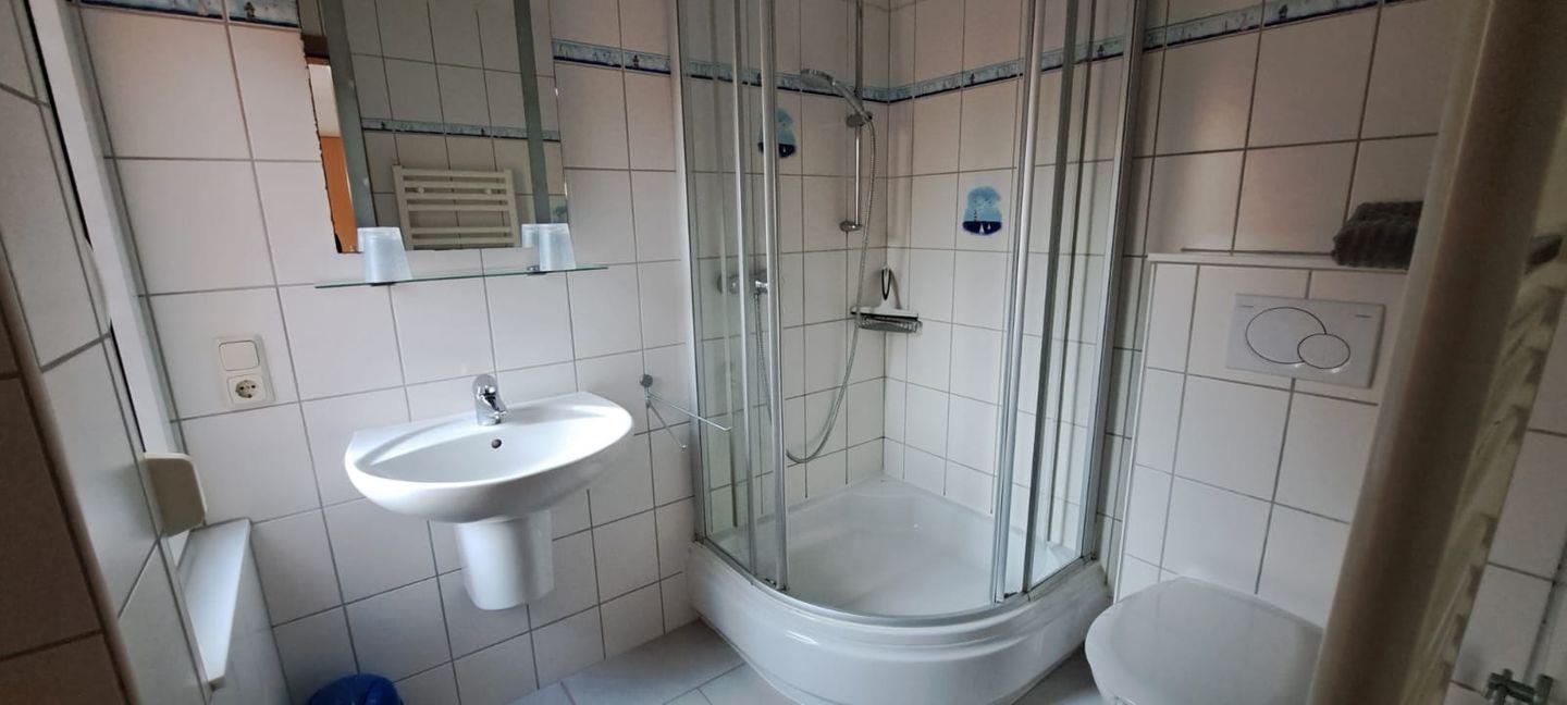 Es besteht aus einem Wohnraum (TV) mit Küchenzeile und Essbereich, einem separaten Schlafzimmer mit Doppelbett sowie einem großzügigen Badezimmer mit Dusche und WC.