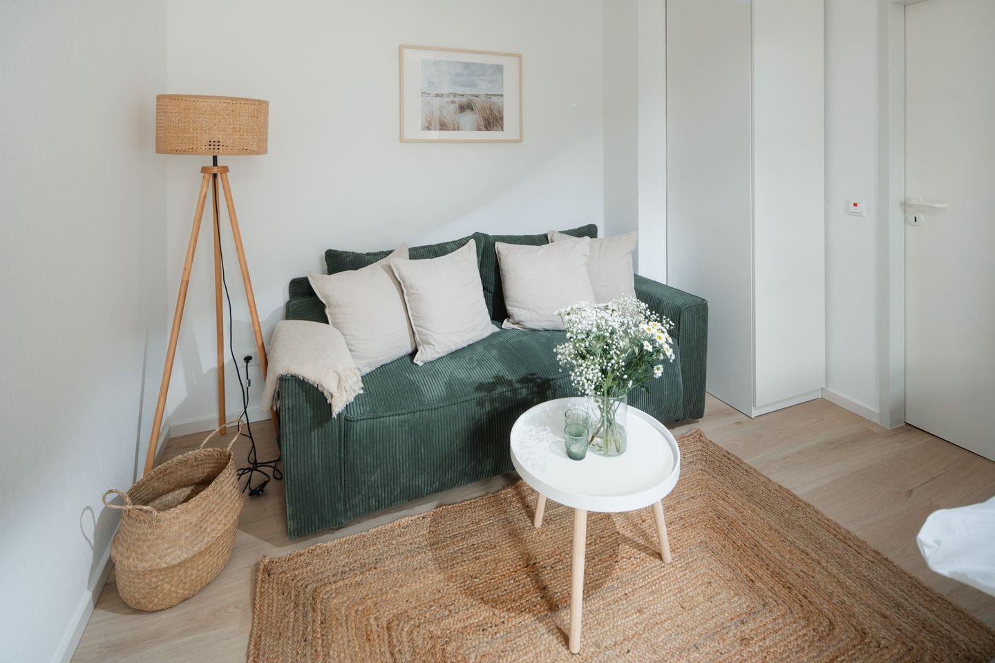 Der skandinavische Stil der Einrichtung verleiht der Wohnung eine besondere Atmosphäre, in der man sich sofort wohlfühlt. Die Unterkunft bietet Platz für bis zu 2 Personen + Baby und ist sogar hundefreundlich, sodass auch Ihr vierbeiniger Begleiter herzlich willkommen ist.