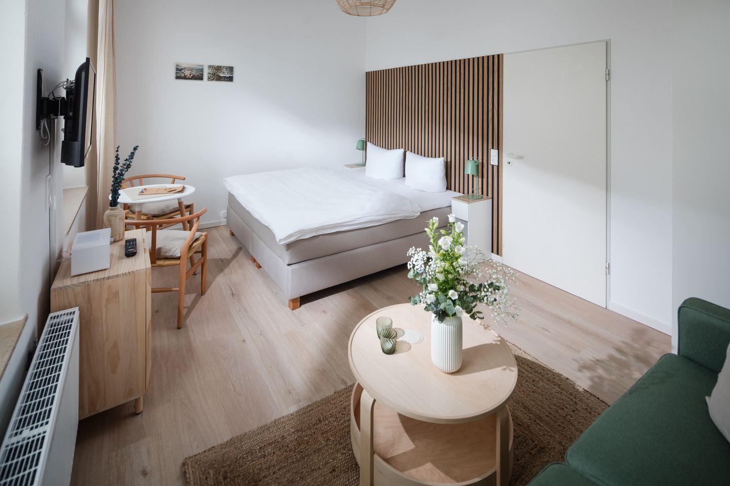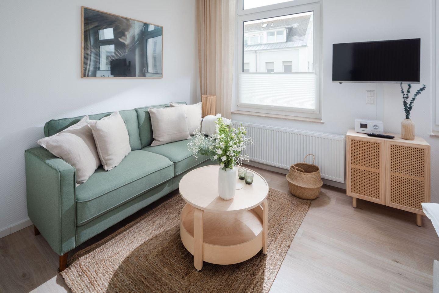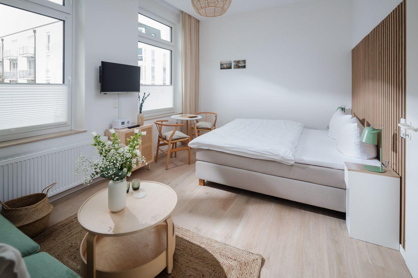 Herzlich willkommen im Apartment B06 im frisch renovierten Haus Bismarck 1884! Dieses gemütliche Einzimmer-Apartment verbindet modernen Komfort mit dem charmanten skandinavischen Stil. Die frisch gestalteten Räumlichkeiten bieten eine einladende Atmosphäre für einen angenehmen Aufenthalt.