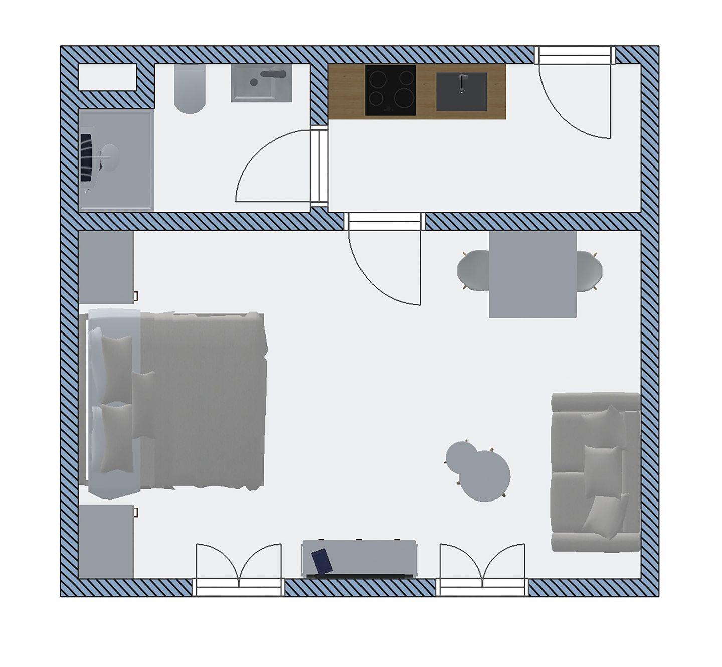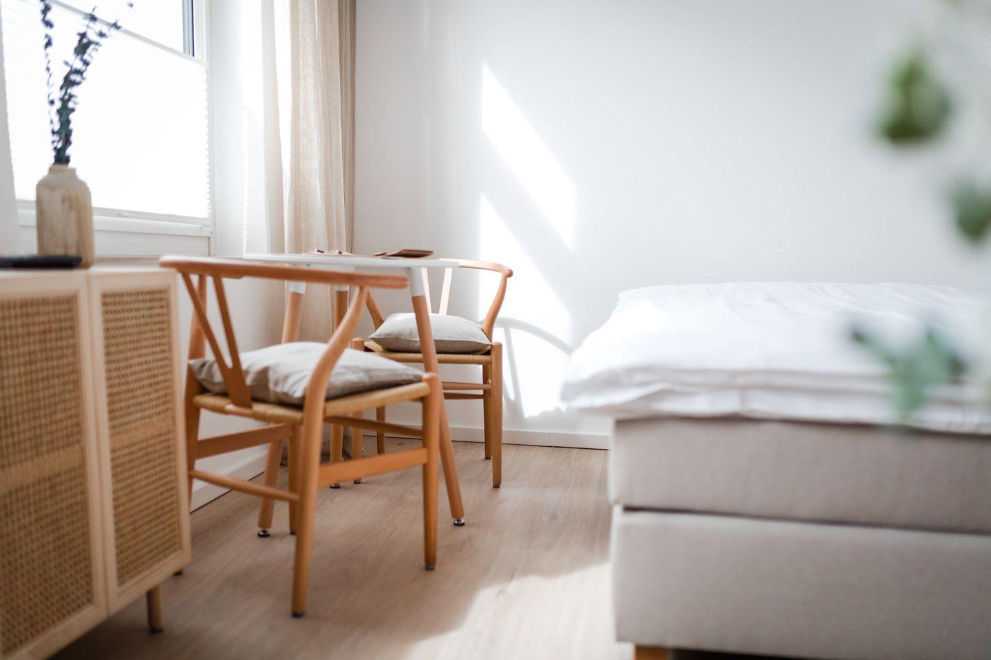 Die neue Küche ist komplett ausgestattet und lädt dazu ein, leckere Mahlzeiten zuzubereiten. Hier finden Sie moderne Geräte und alles, was Sie für die Zubereitung Ihrer Lieblingsspeisen benötigen. Die neuen Möbel setzen Akzente im skandinavischen Design und schaffen eine Wohlfühlatmosphäre. Für einen traumhaften Schlaf sorgt das Boxspringbett der Größe 180x200cm.