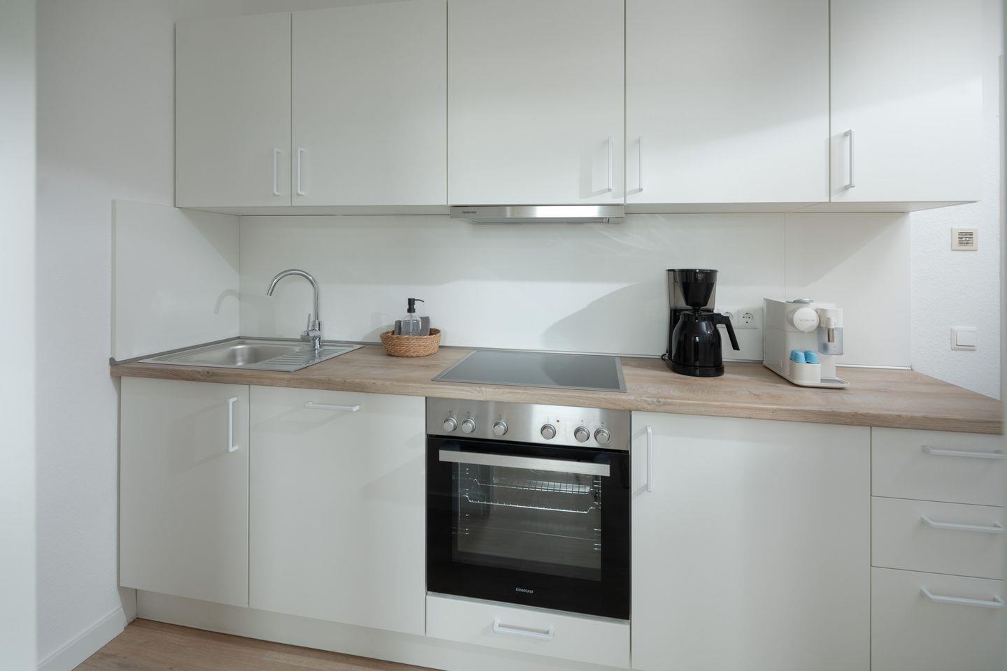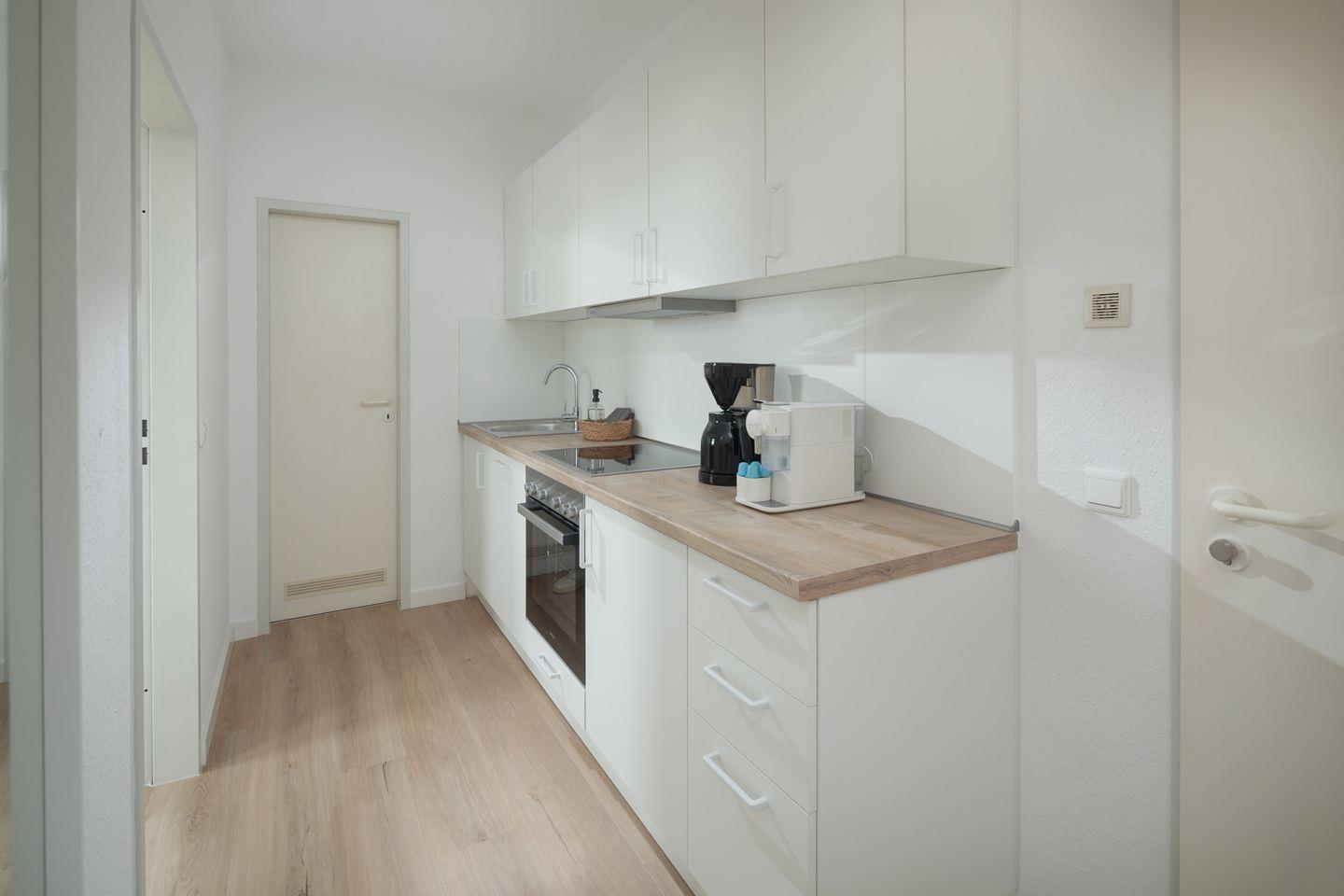 Die Wohnung ist komplett ausgestattet und bietet alles, was Sie für einen angenehmen Aufenthalt benötigen. Das Schlafzimmer verfügt über ein komfortables Boxspringbett der Größe 180x200cm.