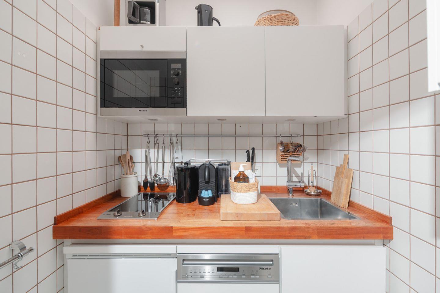 Diese gemütliche Parterrewohnung befindet sich in einem Bungalow hinter dem Haupthaus und bietet Ihnen einen ruhigen Rückzugsort für Ihren Urlaub. Mit einem Schlafzimmer (Doppelbett 160x200cm), einem stilvollen Badezimmer und einer separaten Küche ist sie ideal für Paare oder Alleinreisende.