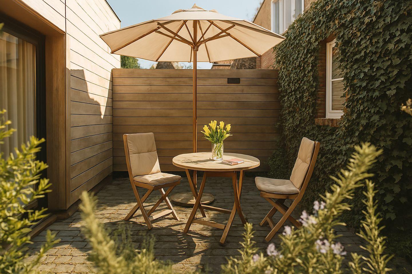 Genießen Sie sonnige Tage auf der Terrasse, auf der Sie die Ruhe und Natur um sich herum genießen können. Trotz der stadtnahen Lage ist es hier sehr ruhig, sodass Sie die perfekte Balance zwischen Erholung und Nähe zu allen Annehmlichkeiten der Stadt finden.