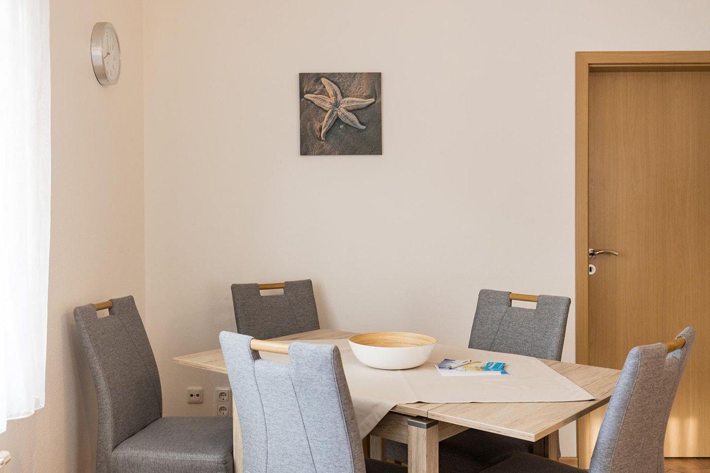 Im lichtdurchfluteten Wohnzimmer erwartet dich eine bequeme Sofaecke und ein Essbereich für gesellige Stunden. Die voll ausgestattete, geschlossene Küche verfügt über Herd, Kühlschrank, Geschirrspüler und Kaffeemaschine – perfekt, um frische Zutaten zuzubereiten. Lass den Tag auf der schönen Terrasse ausklingen und genieße die frische Nordseeluft.
