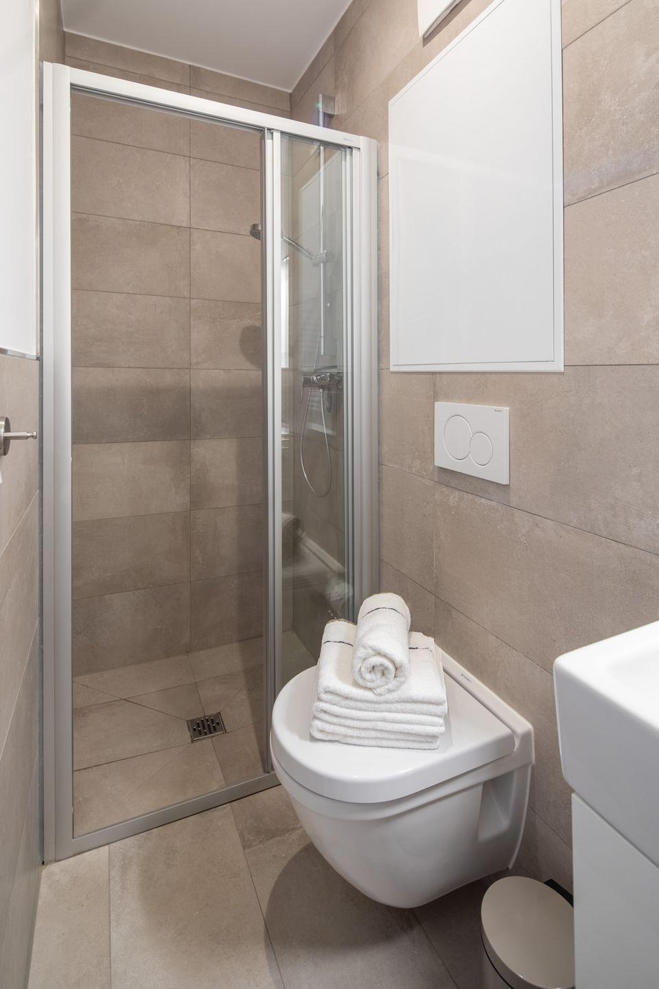 Das Badezimmer wurde modern gestaltet und ist mit einer ebenerdigen Dusche ausgestattet. Hochwertige Armaturen, ausreichend Stauraum und ein klares Design schaffen ein rundum angenehmes Raumgefühl.