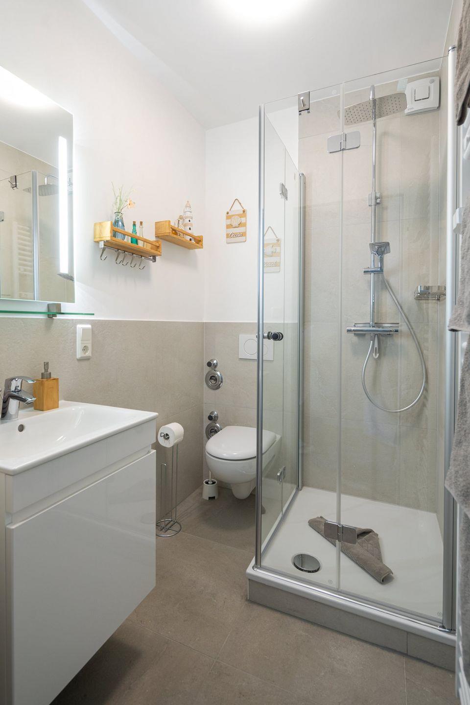 Das moderne Badezimmer verfügt über eine Dusche, Waschbecken und WC. Handtücher und weitere Annehmlichkeiten wie ein Föhn, Staubsauger und Wäscheständer stehen ebenfalls zur Verfügung. Für beste Unterhaltung sorgt das Digital-TV im Wohnbereich – WLAN ist natürlich kostenfrei verfügbar.