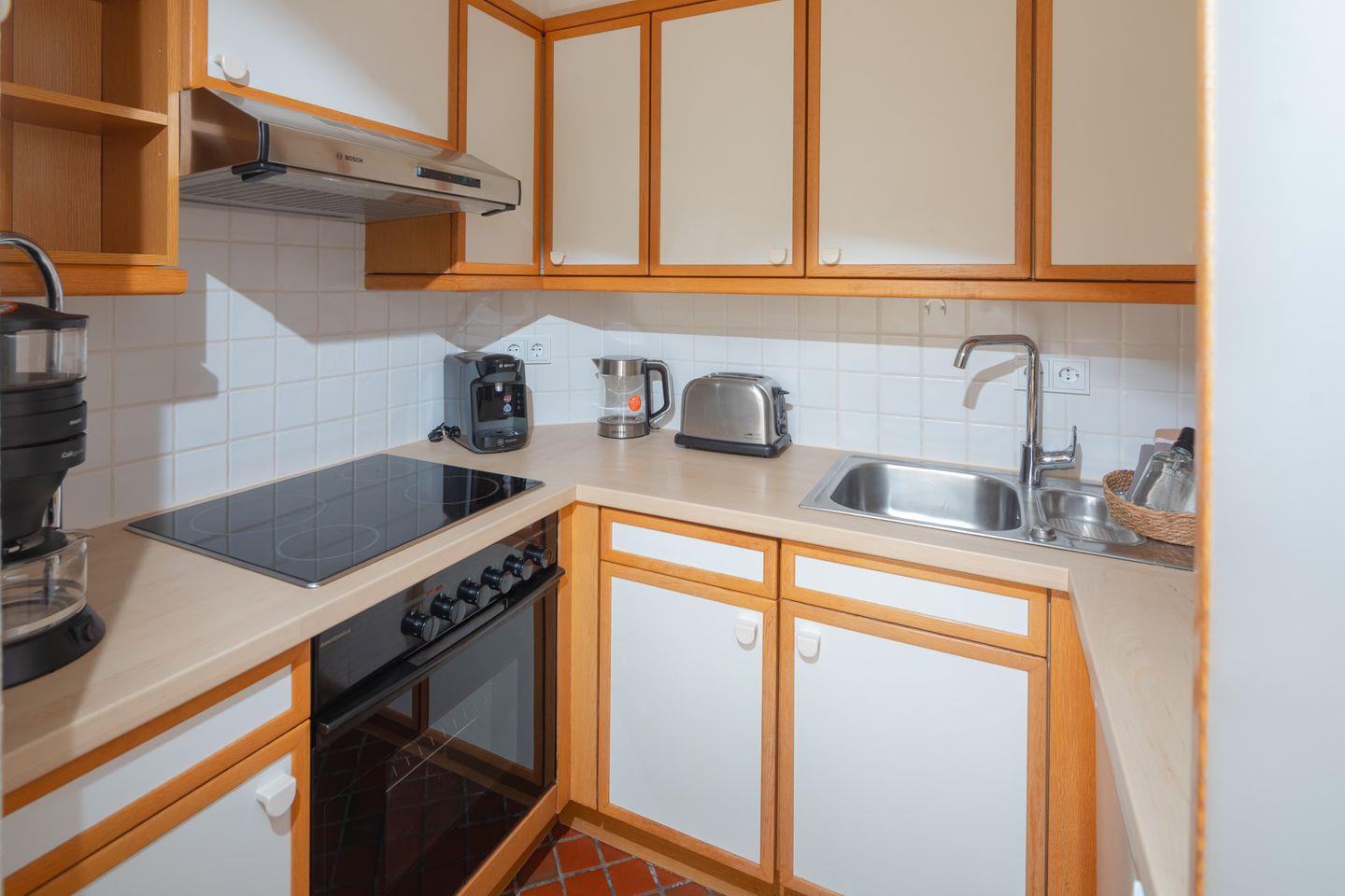 Die Wohnung verfügt über ein separates Schlafzimmer mit gemütlichem Doppelbett (180x200cm) und ein Schlafsofa im Wohnzimmer. Die voll ausgestattete Küche lädt zum gemeinsamen Kochen ein, während das Badezimmer sowie ein zusätzliches separates WC für Komfort sorgen.