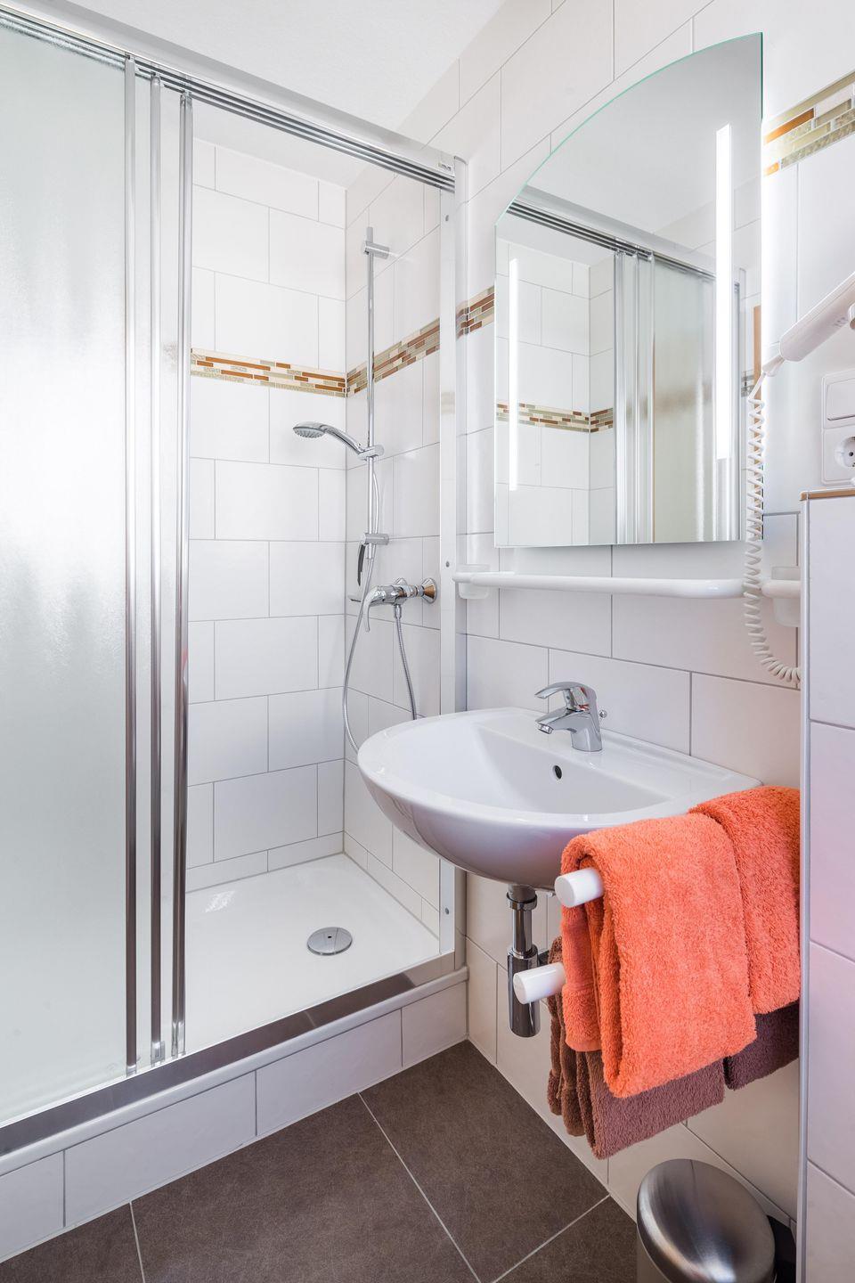 Die Ferienwohnung bietet Schlafmöglichkeiten für bis zu zwei Gäste und verfügt über ein komfortables Schlafzimmer mit Teppichboden und einem Fenster, das für eine angenehme Belüftung sorgt. Das Badezimmer ist modern und beinhaltet eine Dusche sowie ein WC und ein Waschbecken. Hier finden Sie zudem einen Haartrockner.