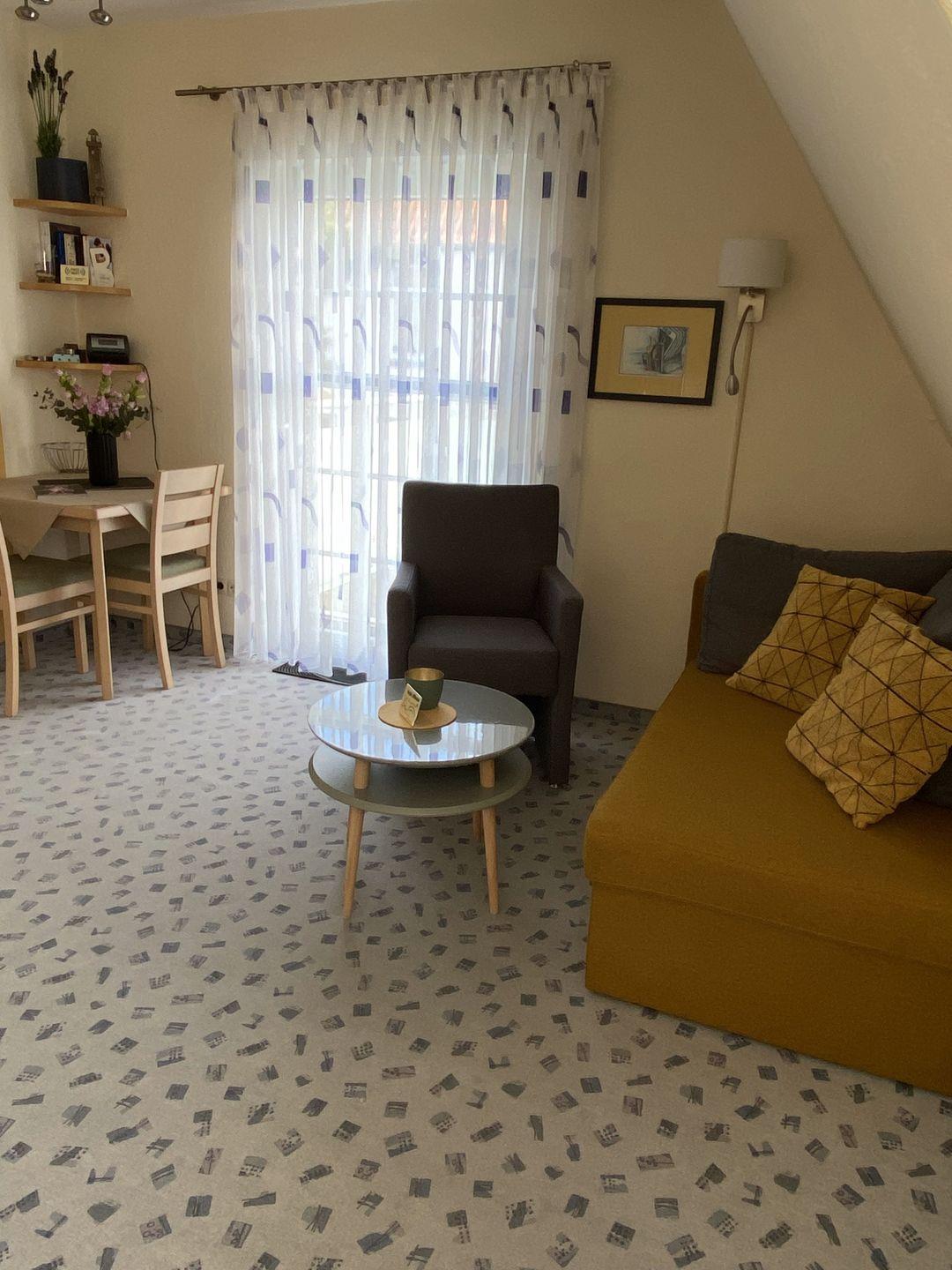 Die Ferienwohnung ist Nichtraucher-freundlich und befindet sich im ersten Stock eines gepflegten Hauses. Sie betreten die Wohnung und finden sich in einem hellen und einladenden Wohnbereich wieder, ausgestattet mit einem gemütlichen Sofa, einem Sessel und einem Esstisch, der Platz für besondere gemeinschaftliche Mahlzeiten bietet. Ein moderner 40 Zoll Fernseher und ein Radio sorgen für Unterhaltung in den Abendstunden, während das WLAN-Internet kostenlos zur Verfügung steht, falls Sie während Ihres Aufenthalts online sein möchten.