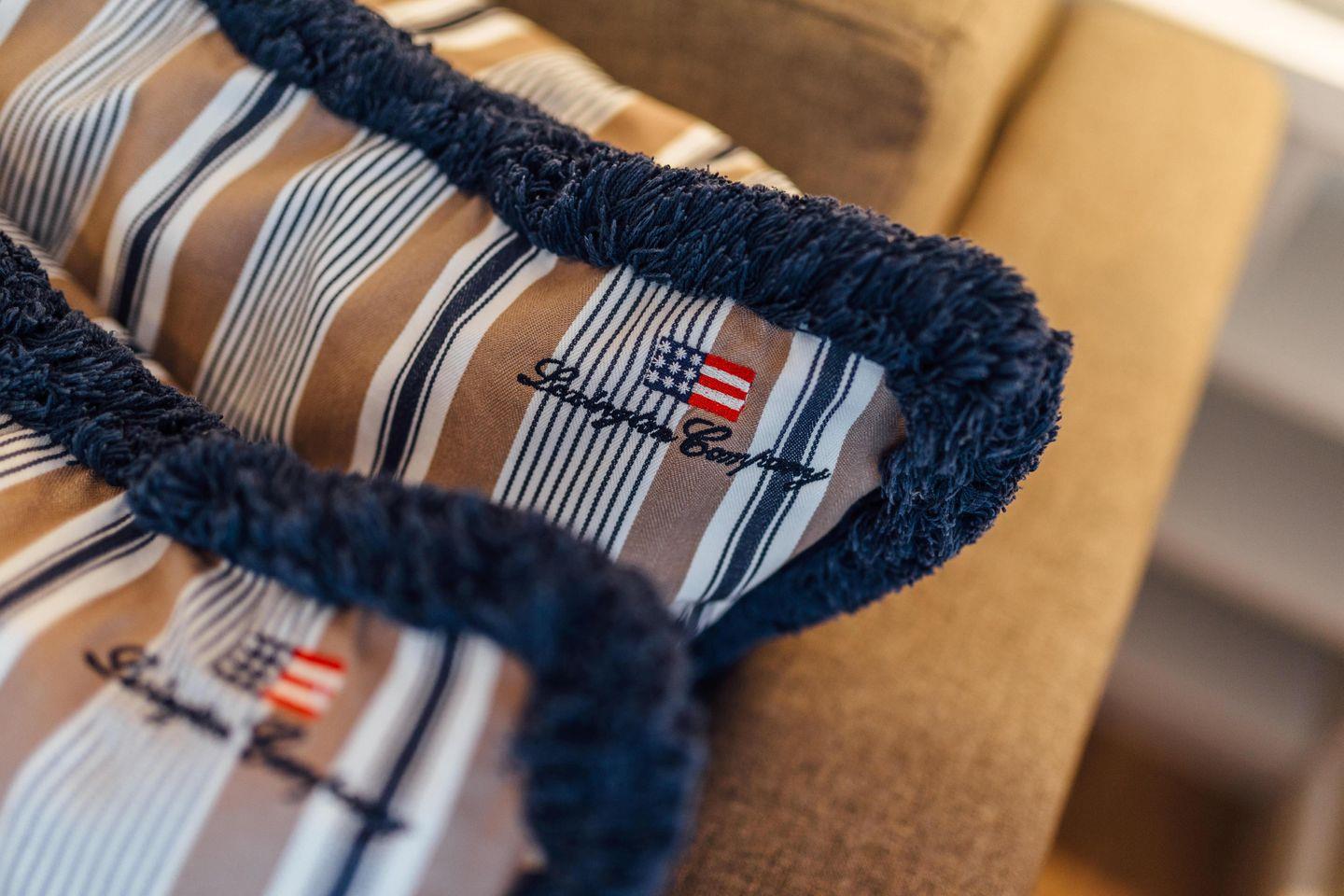 Das Schlafzimmer ist mit einem Doppelbett (1,80 m x 2,00 m) ausgestattet. Der Wohnbereich verfügt über eine Schlafcouch (2,00 m x 2,20 m), so dass ein weiterer Schlafplatz vorhanden ist. Weiterhin ist in dem Wohnbereich eine komplett ausgestattete Küche integriert inklusive Essbereich. Ein kleines Highlight der Wohnung ist die ca. 20 Quadratmeter große Terrasse. Die Fenster und die Terrassentür können mit Außenjalousien verdunkelt werden.