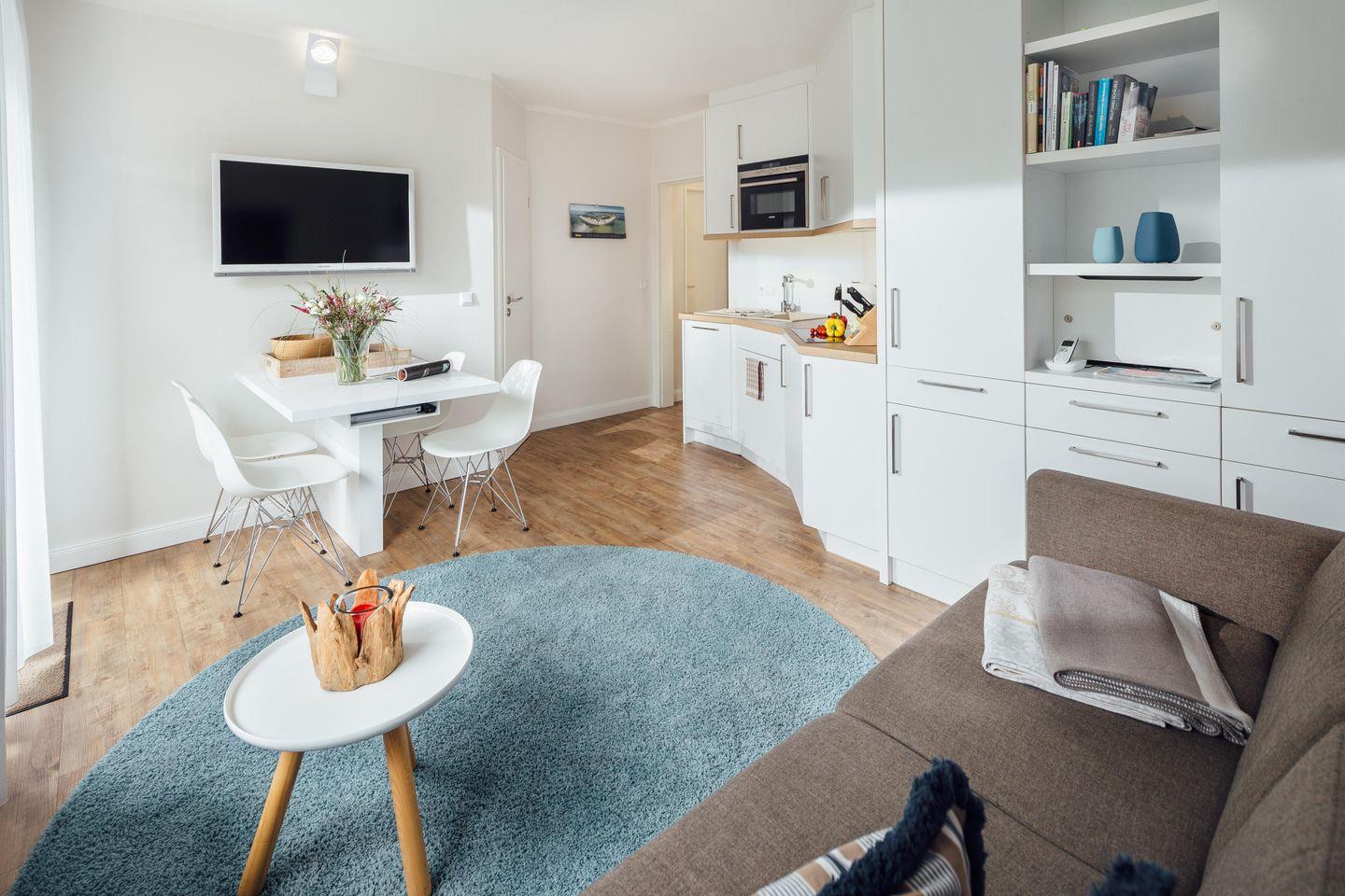 Die Ferienwohnung „ Neykoje“ befindet sich in der Bogenstraße. Dadurch liegt die Wohnung ruhig und ist trotzdem unweit vom Inselkern und den Stränden entfernt. Die Wohnung bietet auf ca. 35 Quadratmetern Platz für 2 Personen, durch die bequeme Schlafcouch ist getrenntes Schlafen möglich.