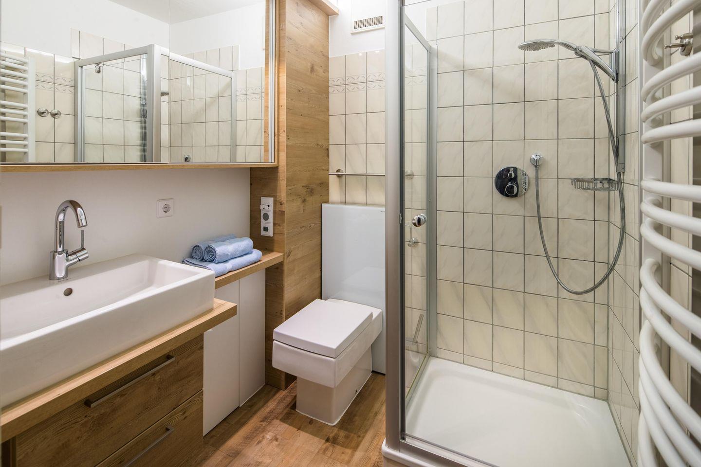 Zudem sind Waschmaschine und Trockner (gemeinschaftlich gegebenenfalls gegen Bezahlung nutzbar) in dem Haus (im Keller) vorhanden, was besonders für längere Aufenthalte und Familien mit Kindern von Vorteil ist. Ein Vierbeiner (Höhe maximal kniehoch) ist gern willkommen. Die Hundewiese (ohne Leine!) ist ca. 15 Minuten entfernt.