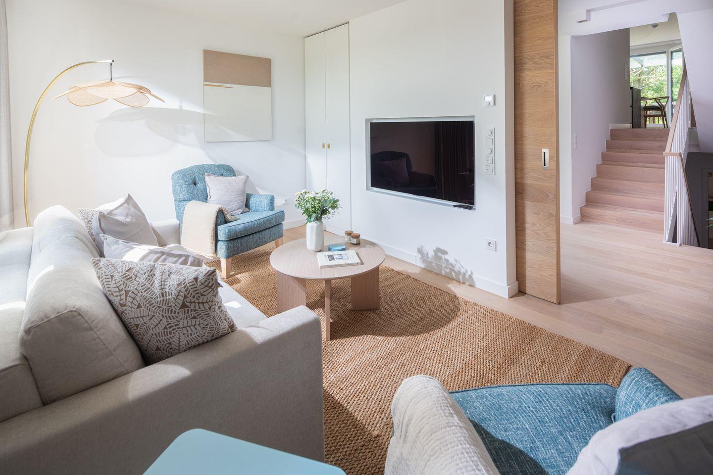 Das lichtdurchflutete Haus empfängt dich mit klaren Linien, hochwertigen Materialien und einer Atmosphäre, die sofort Ruhe reinbringt. In drei vollwertigen Schlafzimmern schläfst du auf hochwertigen Boxspringbetten (180×200 cm) – erholsam, bequem und mit dem beruhigenden Wissen, dass jeder seinen eigenen Rückzugsort hat. Alle Schlafzimmer sind mit maßgefertigten Kleiderschränken und modernen Smart-TVs ausgestattet – ideal für entspannte Abende oder eine kleine Serie vor dem Einschlafen.
