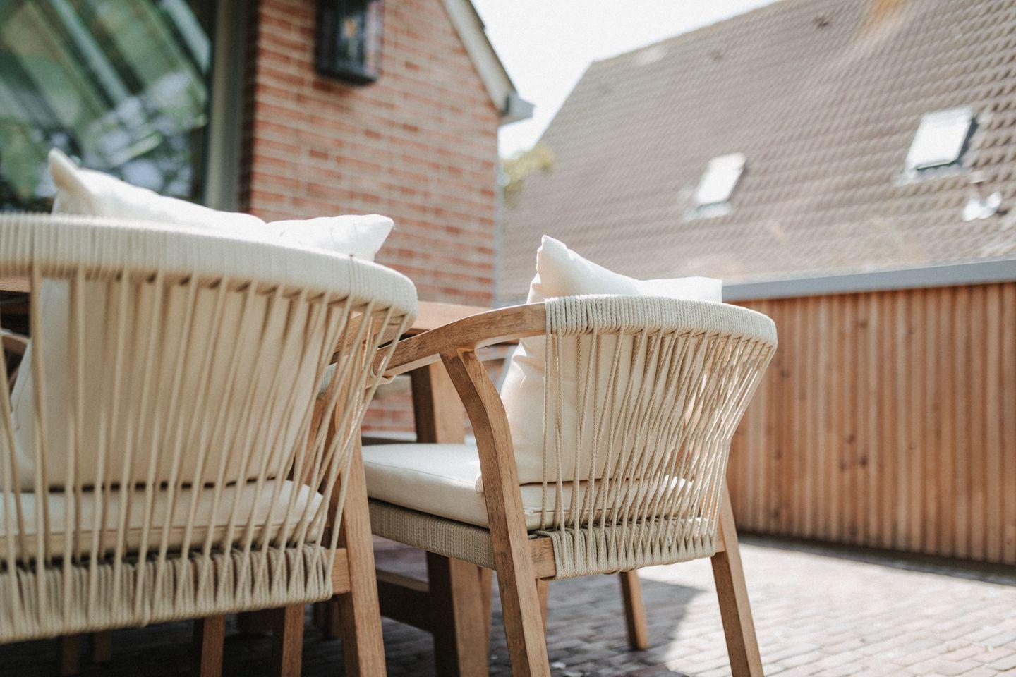 Der Gartenbereich mit gepflegtem Rasen macht das Haus auch für Familien mit Kindern oder Hunden zum idealen Feriendomizil. Während die Kids auf dem Rasen spielen oder im Sand buddeln, kannst du entspannt lesen, Kaffee trinken oder dem Wind beim Durch-die-Büsche-Wehen zuhören.