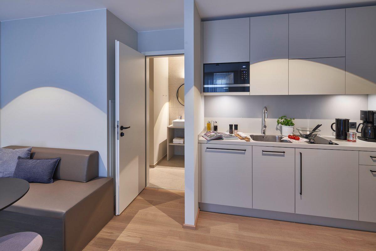 Die Wohnung "Botter" besticht durch ihren modernen, cleanen Look und die Verwendung von hochwertigen Naturmaterialien. Das individuelle und stilvolle Interieur ist inspiriert von den Farben und Kontrasten aus Sand und Meer, Sonne und Himmel. Das Schlafzimmer verfügt über ein Doppelbett (1,80m x 2,00m). Die kleine Küchenzeile im Wohnbereich ist voll ausgestattet. Ein Highlight der Wohnung "Botter" ist der zum Innenhof gelegene Balkon. Nach vorheriger Anmeldung steht den Gästen die Nutzung der Hotelsauna kostenfrei zur Verfügung und das Hotelfrühstück kann zugebucht werden. Das Hotel ist über den Innenhof direkt zugänglich und somit auf kurzem Weg zu erreichen. Hunde sind in dieser Wohnung nicht erlaubt.