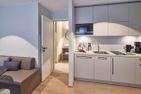 Die Wohnung besticht durch ihren modernen, cleanen Look und die Verwendung von hochwertigen Naturmaterialien. Das individuelle und stilvolle Interieur ist inspiriert von den Farben und Kontrasten aus Sand und Meer, Sonne und Himmel. Das Schlafzimmer verfügt über ein Doppelbett (1,80m x 2,00m). Die kleine Küchenzeile im Wohnbereich ist voll ausgestattet. Ein Highlight der Wohnung "Tjalk" ist der ca. 5 qm große Balkon, der in nördlicher Ausrichtung zum Innenhof liegt. Gäste der Ferienwohnung "Tjalk" können zudem die Annehmlichkeiten des Hotels "Misan" nutzen. Nach vorheriger Anmeldung steht den Gästen die Nutzung der Hotelsauna kostenfrei zur Verfügung und das Hotelfrühstück kann zugebucht werden. Das Hotel ist über den Innenhof direkt zugänglich und somit auf kurzem Weg zu erreichen. Hunde sind in dieser Wohnung nicht erlaubt.