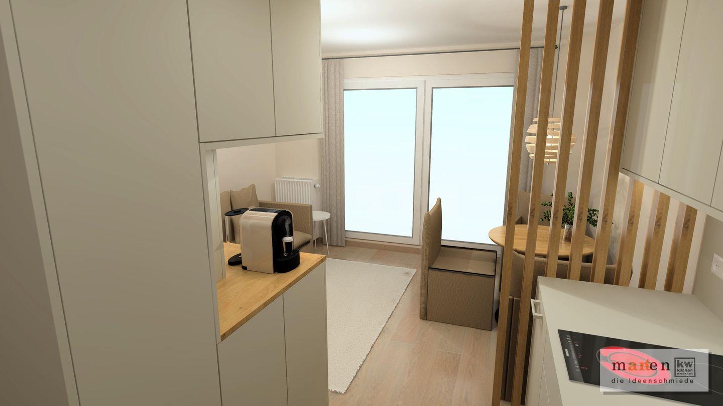 Die Wohnung verfügt über ein Schlafzimmer mit Doppelbett. Das Wohnzimmer ist mit einer voll eingerichteten Küchenzeile ausgestattet. Das Bad mit Dusche und WC rundet das Raumangebot ab. Ein Highlight der Wohnung ist der etwa 9 Quadratmeter große Balkon. Waschmaschine und Wäschetrockner befinden sich im Haus und stehen (für die gemeinschaftliche Nutzung gegen Münzeinwurf) zur Verfügung, was besonders für längere Aufenthalte von Vorteil ist. Hunde sind in dieser Ferienwohnung nicht erlaubt.