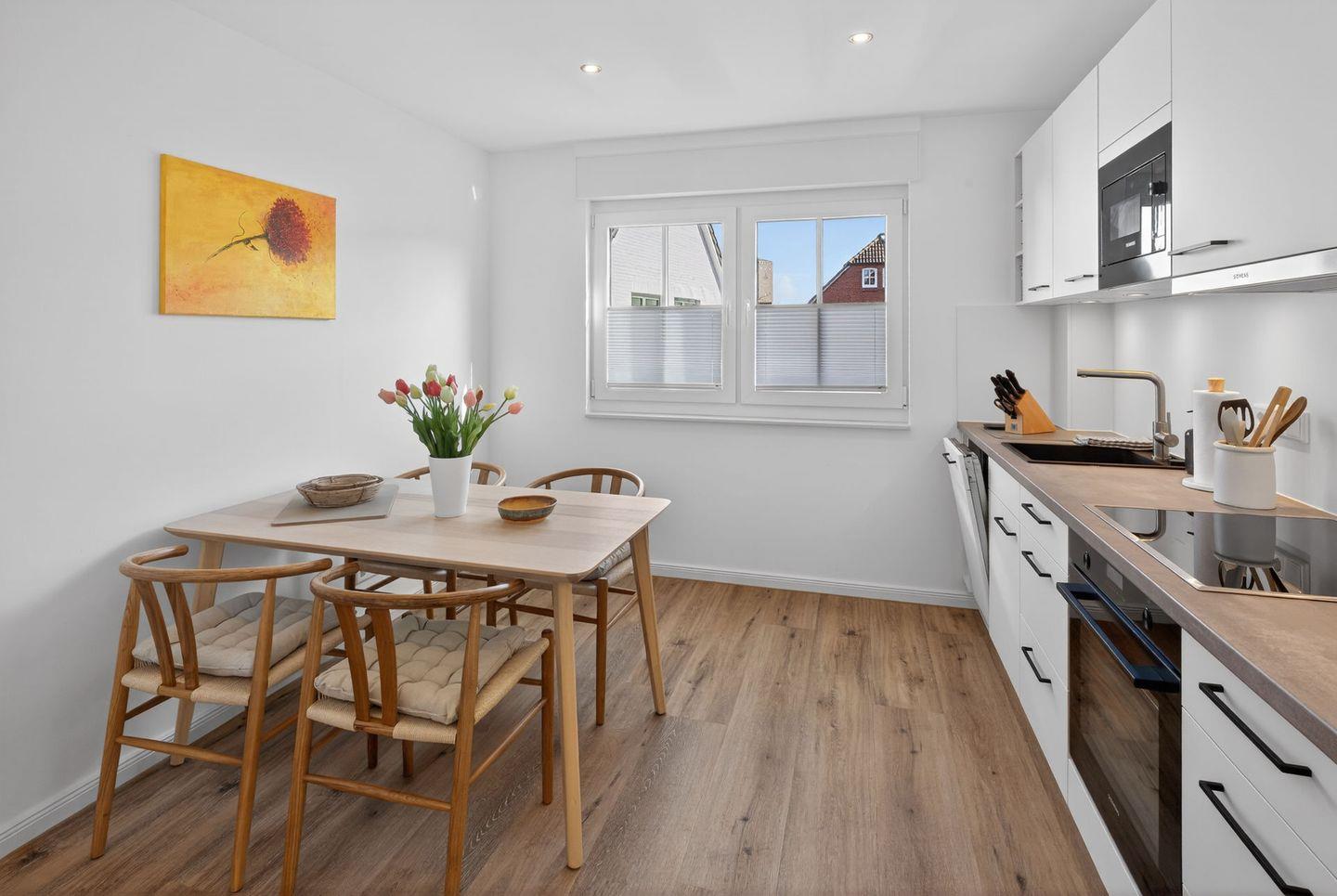 Inselauszeit 27 ist eine Wohnung im 1. Stock mit 74 m² für bis zu 4 Personen. Die 3-Zimmer-Unterkunft bietet 1 Schlafzimmer, eine geschlossene Küche mit Esstisch und guter Ausstattung sowie ein Bad mit bodengleicher Dusche. Balkon, WLAN, 2 TV, Fußbodenheizung sorgen für Komfort. Strand, Stadtzentrum, Einkaufsmöglichkeiten und Restaurants sind bequem erreichbar.