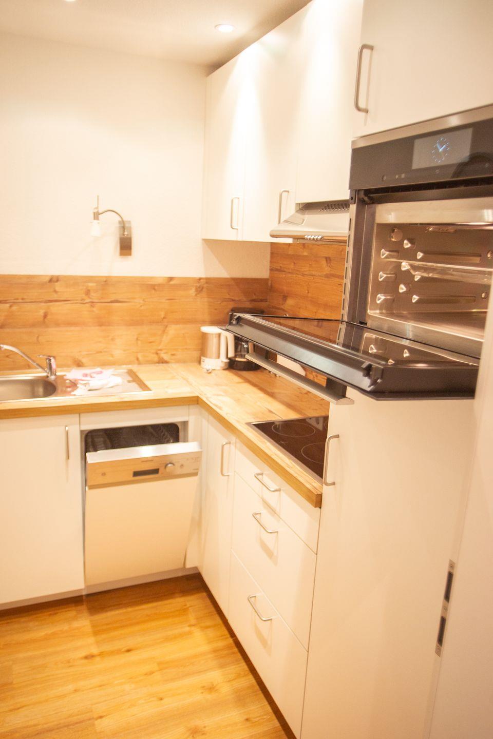 Die Wohnung im EG betreten Sie durch das abschließbare Gartentor über die geräumige Terrasse. Das Elternschlafzimmer ist ausgestattet mit Doppelbett, das Kinderzimmer dahinter mit Etagenbett. Im Wohn-Schlafraum befindet sich ein zusätzliches Schrankbett und ein Schlafsofa. Die Küchenzeile ist separat, das Innenbad mit Dusche/WC.