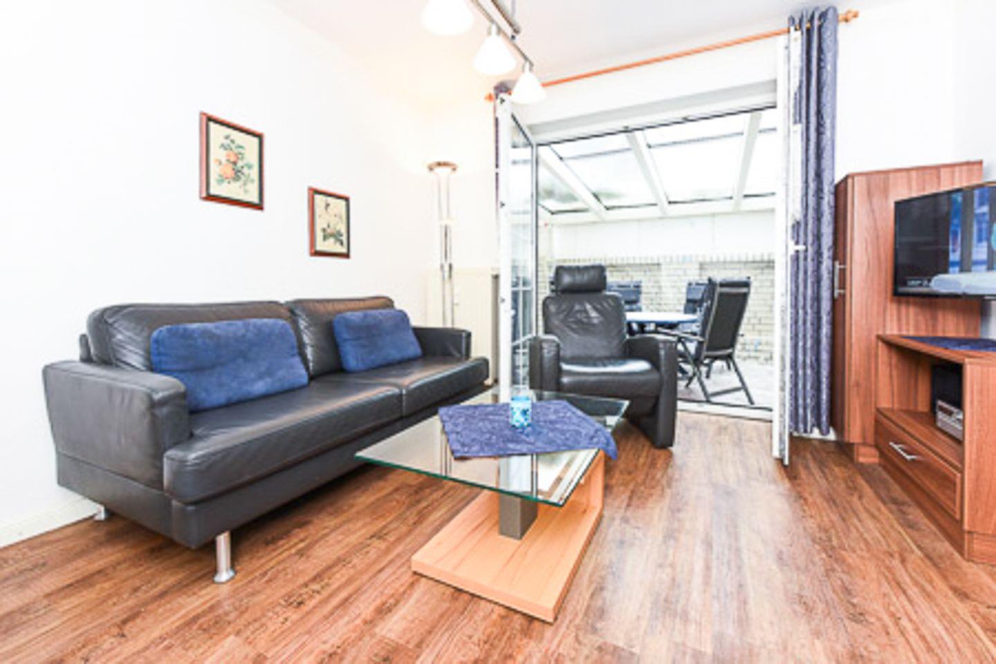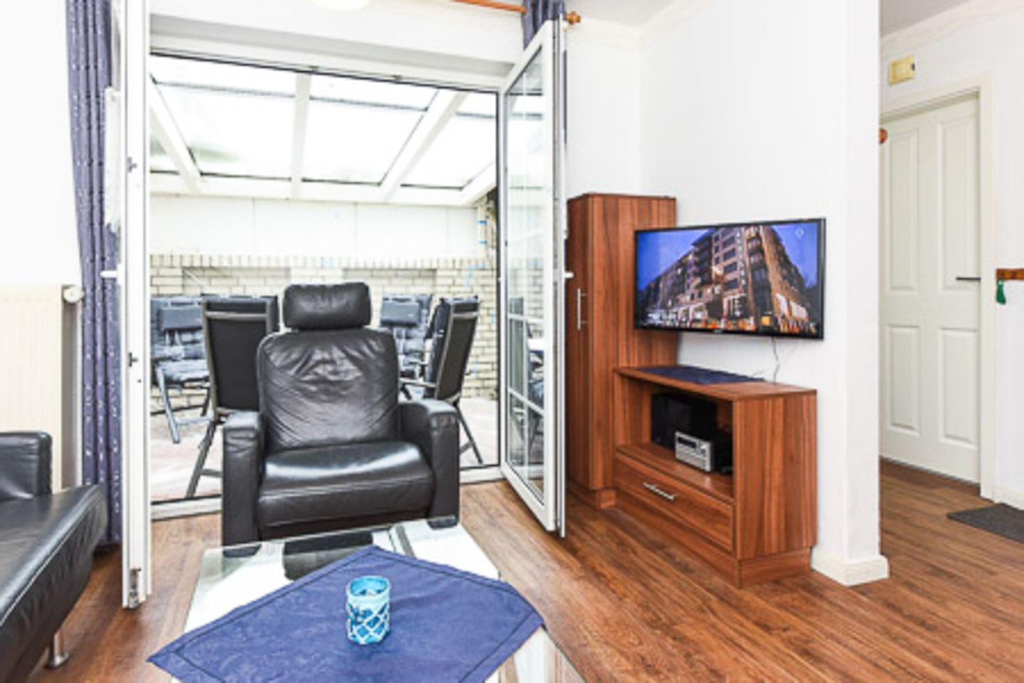 der separate Eingang hinter dem Haus führt über die überdachte Terrasse. Im Wohnbereich befinden sich Pantryküche sowie Sofa und Essecke für zwei Personen. Das Bad hat Dusche/WC. Separates Schlafzimmer mit zwei Einzelbetten(90x200). Kein Wlan. Bäcker, Lebensmittelgeschäfte in der Strandstraße und die Strandpromenade sind um zwei Straßenecken fußläufig zu erreichen.