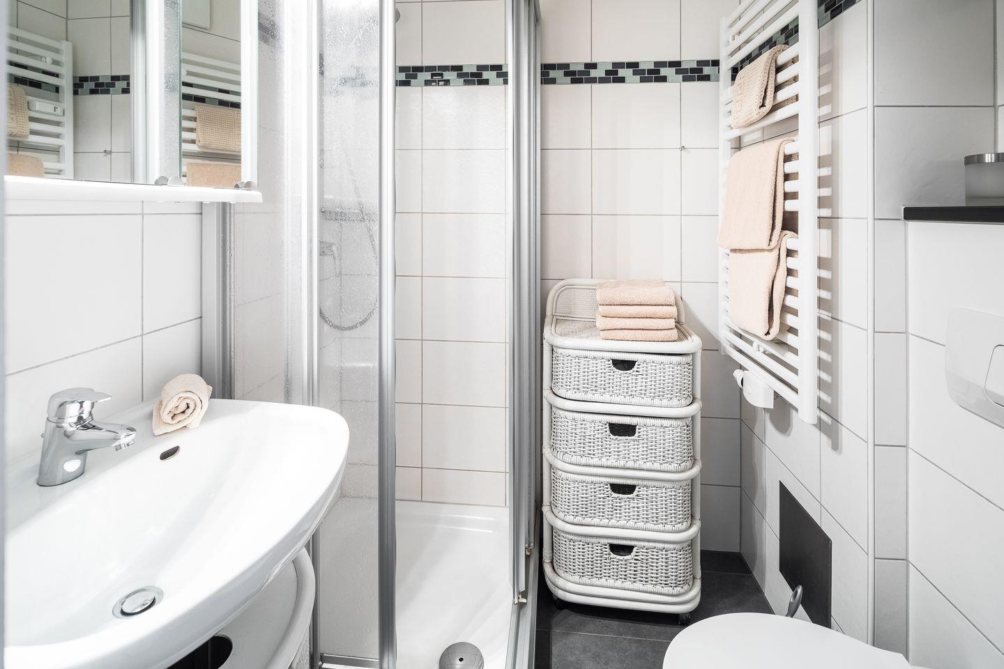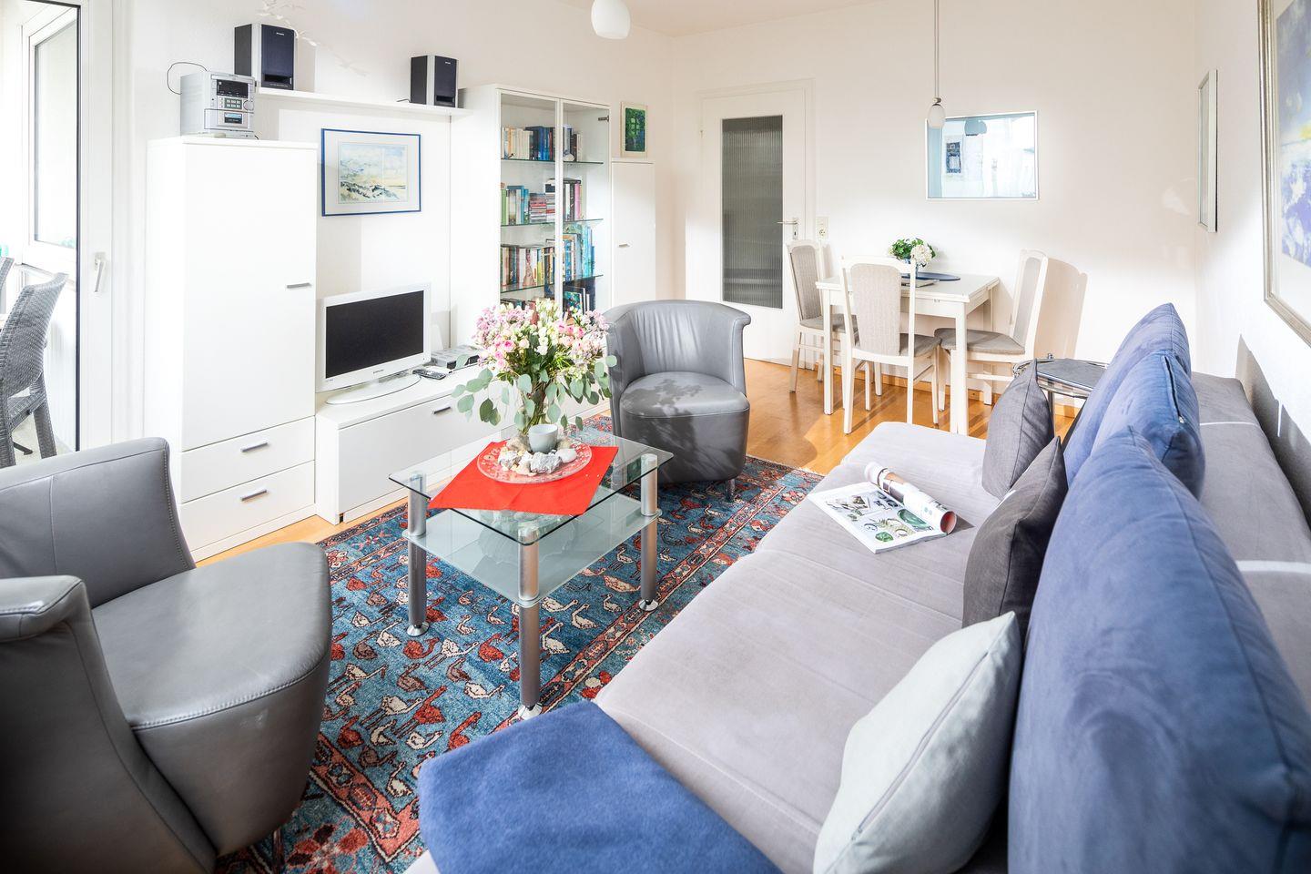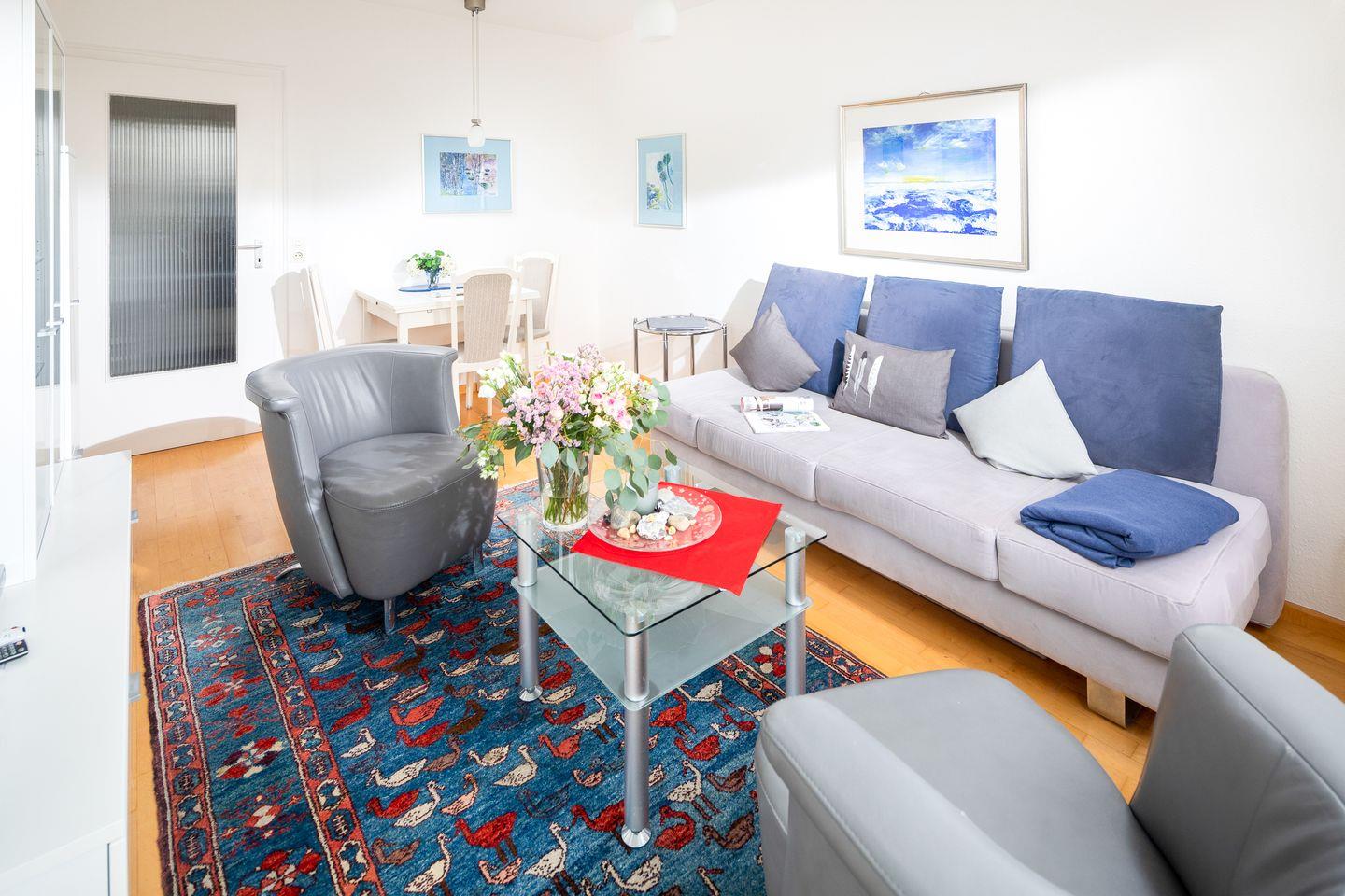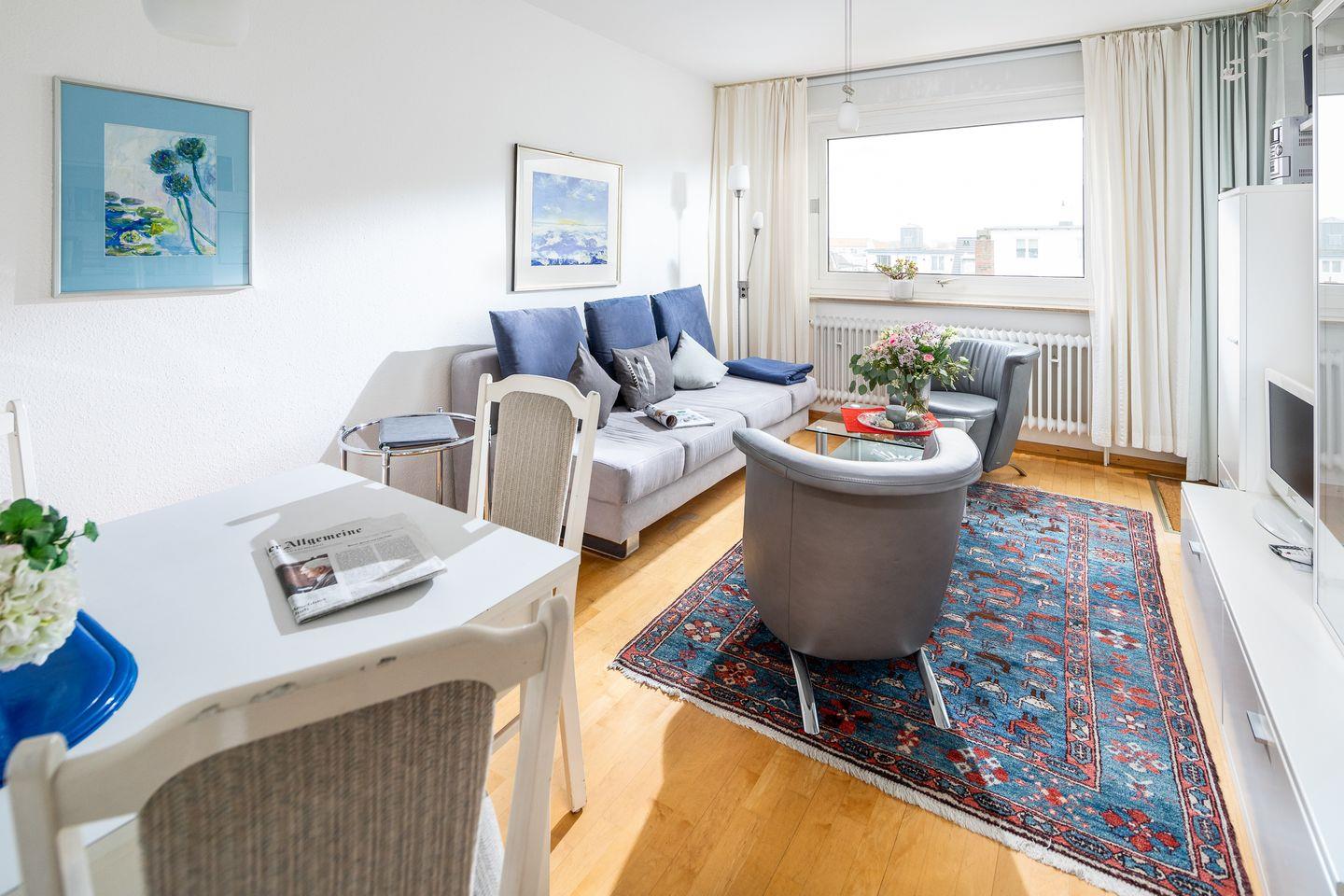 das Appartement verfügt über ein separates Schlafzimmer mit Doppelbett, Diele und separate Kochküche. Über den Wohn-Schlafraum (Schlafsofa für 1 Person) mit Essecke für 3 Personen haben Sie Zugang zum Balkon. Der Südbalkon liegt in Richtung Süden mit einem hübschen Blick über die Dächer. Fahrstuhl vorhanden. Bäcker, Lebensmittelgeschäfte und die Strandpromenade sind die Straße runter fußläufig zu erreichen.