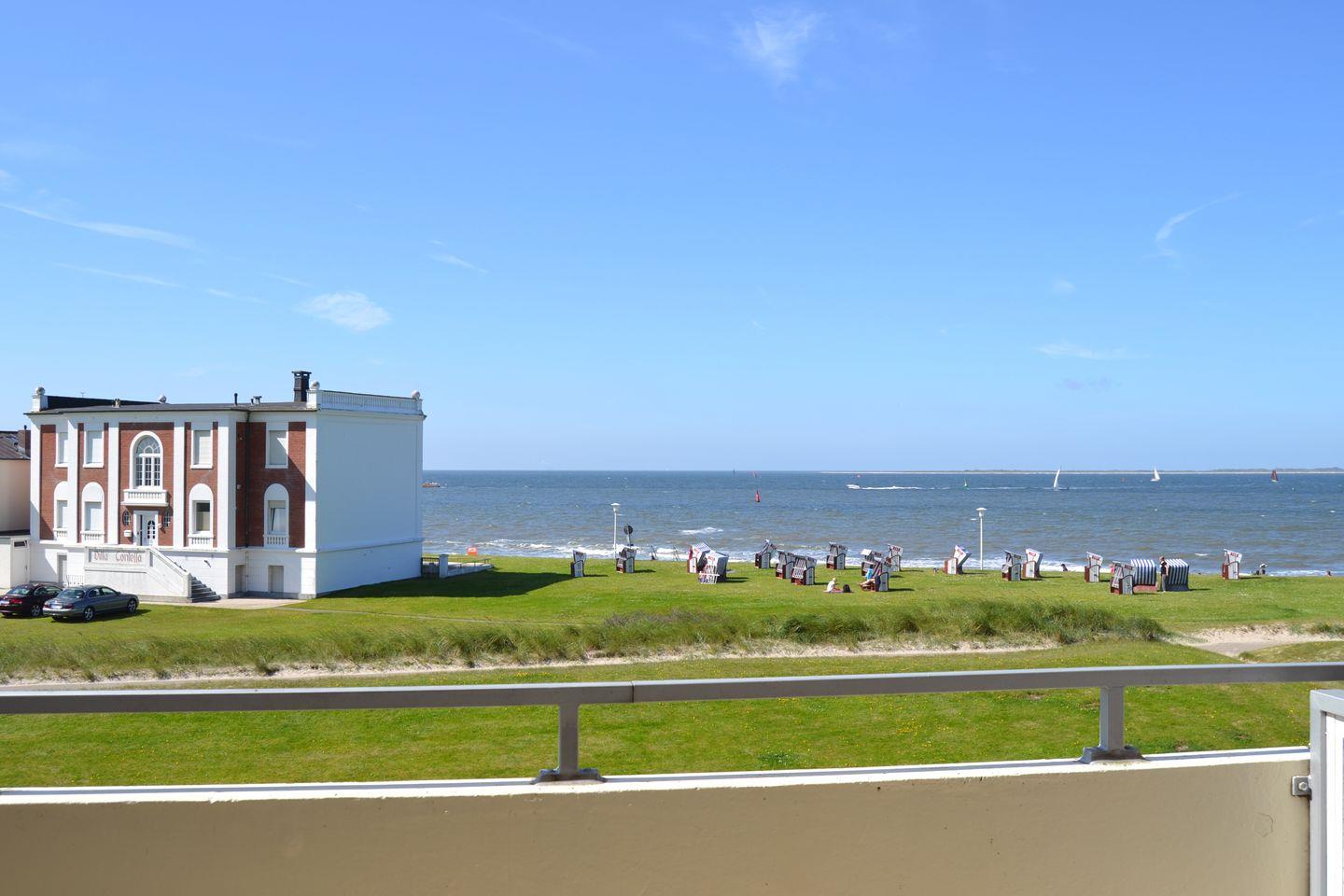 der Wohn-Schlafraum ist ausgestattet mit einem modernen Verwandlungs-Doppelbett in Komforthöhe. Abends lässt sich dies leicht mit einem Griff über das Sofa klappen und schafft so tagsüber noch Platz für einen zusätzlichen bequemen Lesesessel. Vom gesamten Wohnraum und auch vom geräumigen Balkon haben Sie einen traumhaften Meerblick über die Liegewiese mit Strandkörben hinweg, vorbei an der Villa Contessa bis nach Juist und zum Festland hinüber. Moderne, voll ausgestattete Küchenzeile in der Diele, Badezimmer mit Dusche und WC. Fahrstuhl vorhanden.