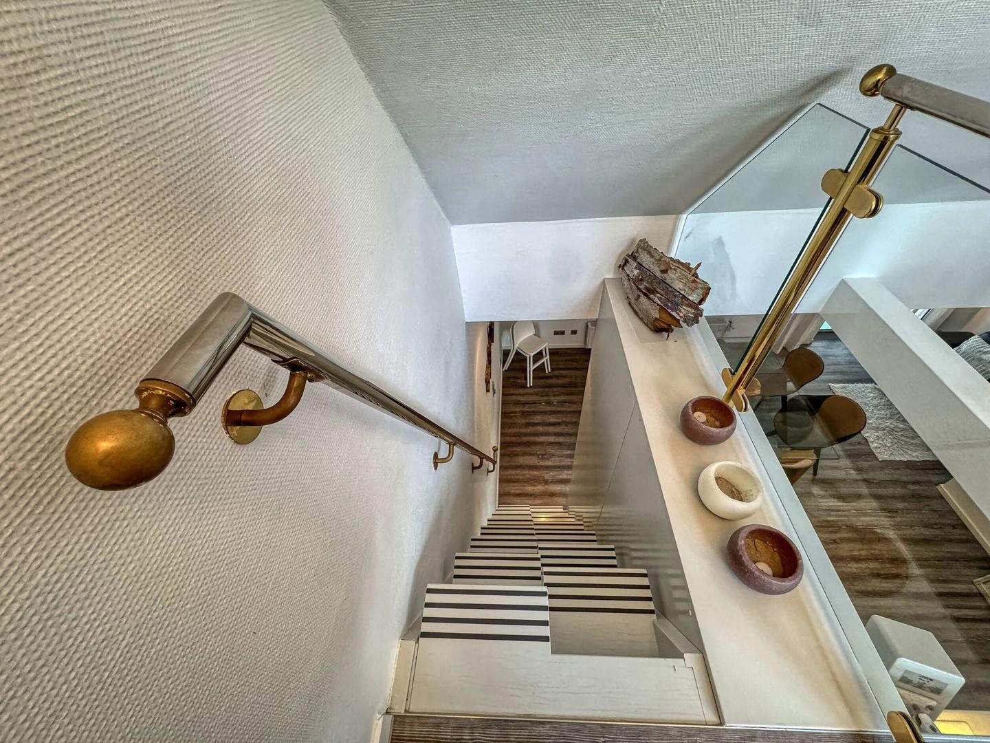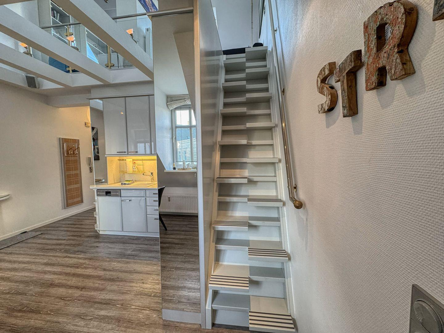 Den TV-Bereich in der offenen Galerie erreichen Sie über eine Raumspartreppe.