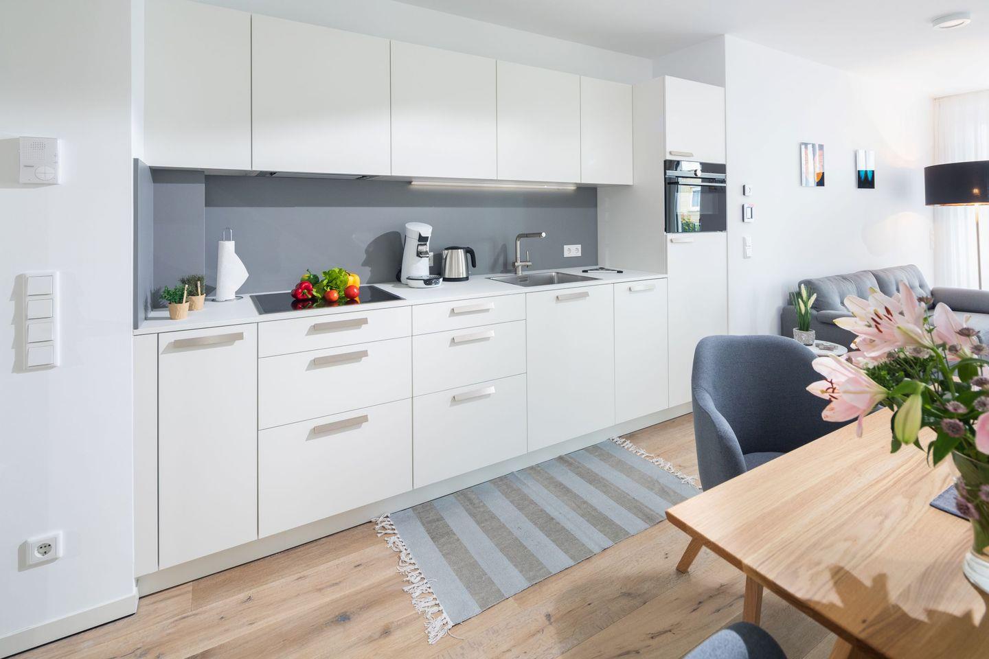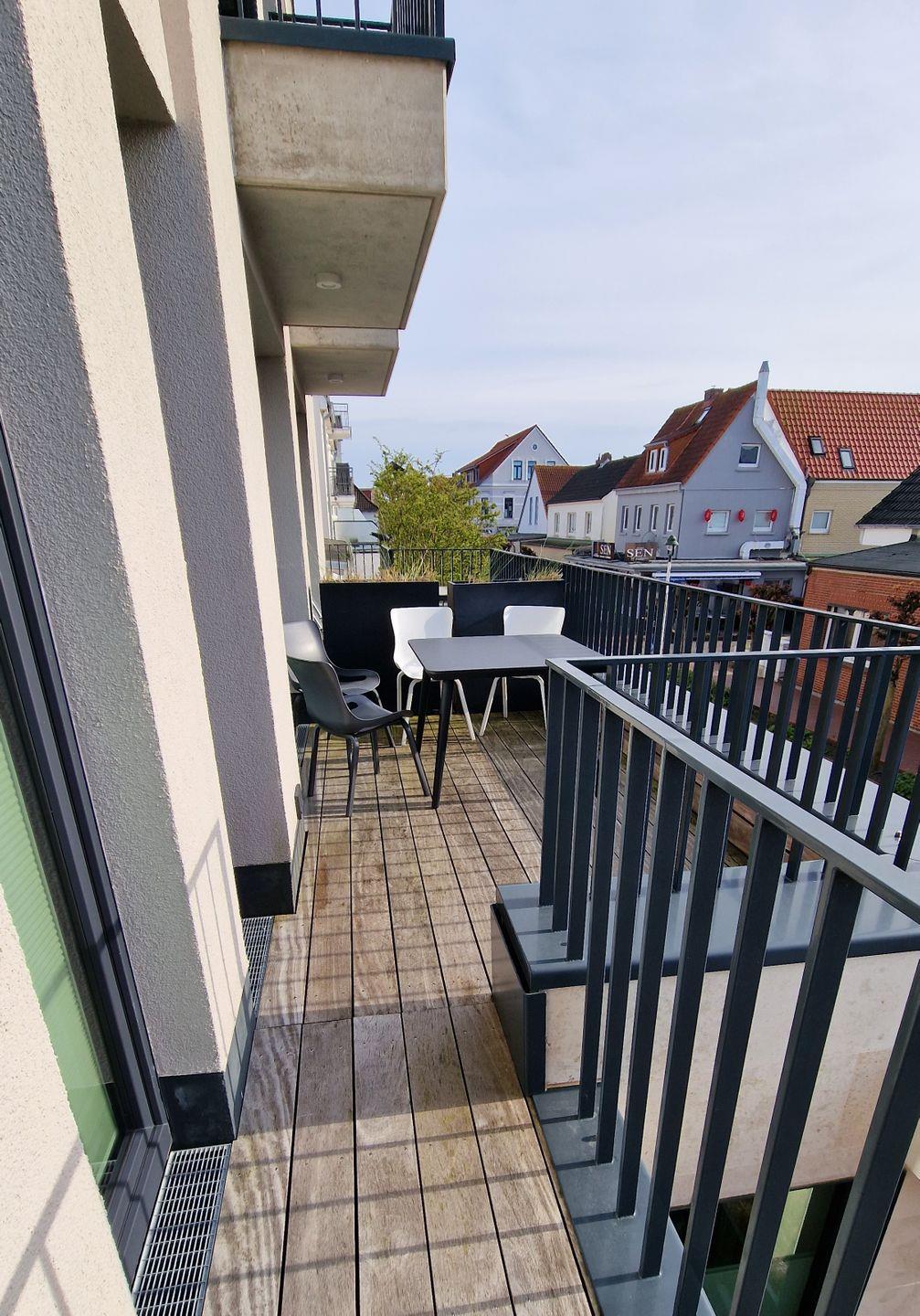 die Wohnung im 1. OG verfügt über 2 separate "Norderneyer" Schlafzimmer mit Doppelbett und zusätzlichem TV. Wohnraum mit voll ausgestatteter Küchenzeile, Essplatz und Sofaecke. Das Tageslichtbad besticht mit einer ebenerdigen XXL-Dusche und WC. Auch ein zusätzliches Gäste-WC ist vorhanden. Den Westbalkon betreten Sie über den Wohnraum oder über eines der beiden Schlafzimmer. Fahrstuhl vorhanden.