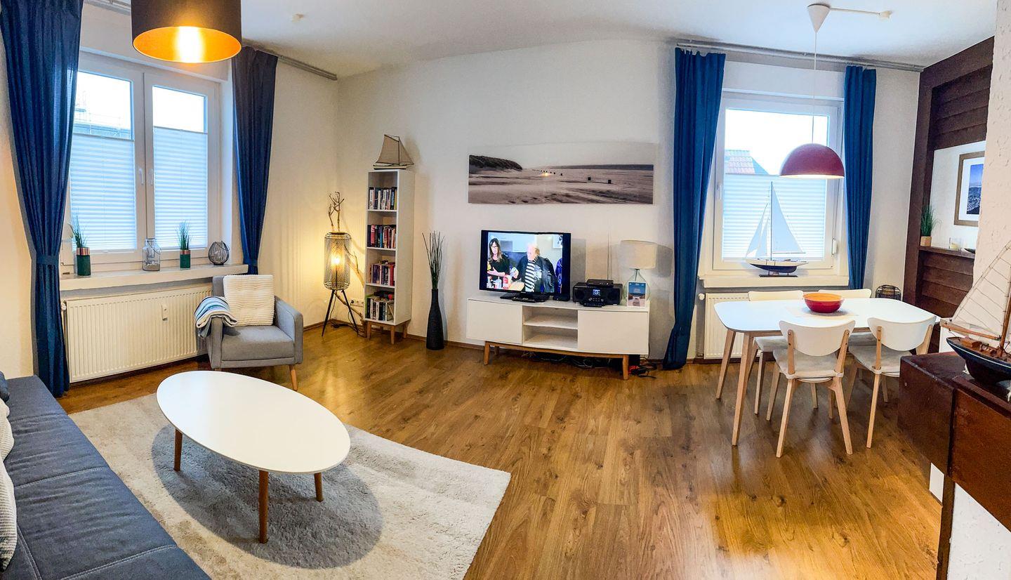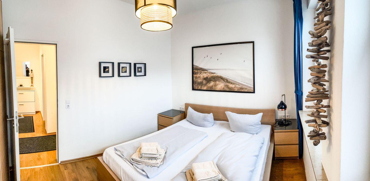 das Appartement liegt nach hinten raus im 1. OG und verfügt über ein separates Schlafzimmer mit Doppelbett, Diele, Wohn-Schlafraum (Schlafsofa mindestens 1,60m breit) und Tageslichtbad mit Dusche/WC. Die Küchenzeile befindet sich in einer kleinen Nische mit dem Essplatz vor dem Fenster. Bäcker, Lebensmittelgeschäfte und die Strandpromenade sind die Straße rauf oder runter fußläufig zu erreichen.