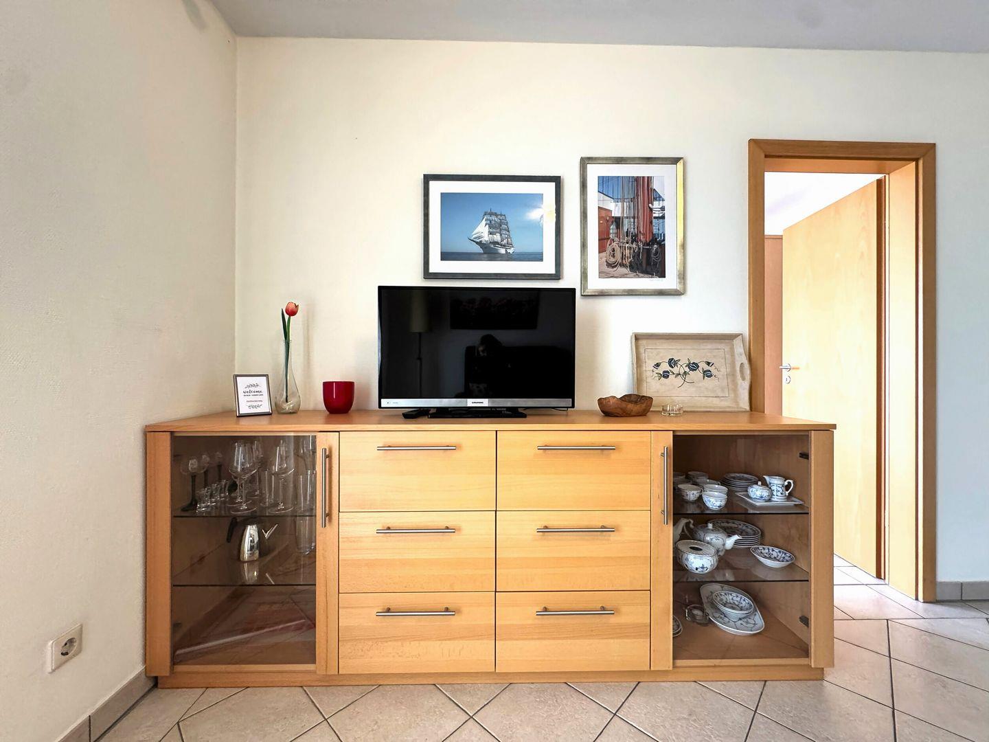 die Wohnung im 1. OG verfügt über ein separates Schlafzimmer, Diele mit voll ausgestatteter Küchenzeile, Bad mit Dusche/WC und Wohnzimmer mit Essecke. Sowohl das Schlaf-als auch das Wohnzimmer haben über den Balkon hinweg einen traumhaften, direkten und unverbauten Meerblick Richtung Milchbar Strand und Meer. Kein Wlan. Fahrstuhl vorhanden.
