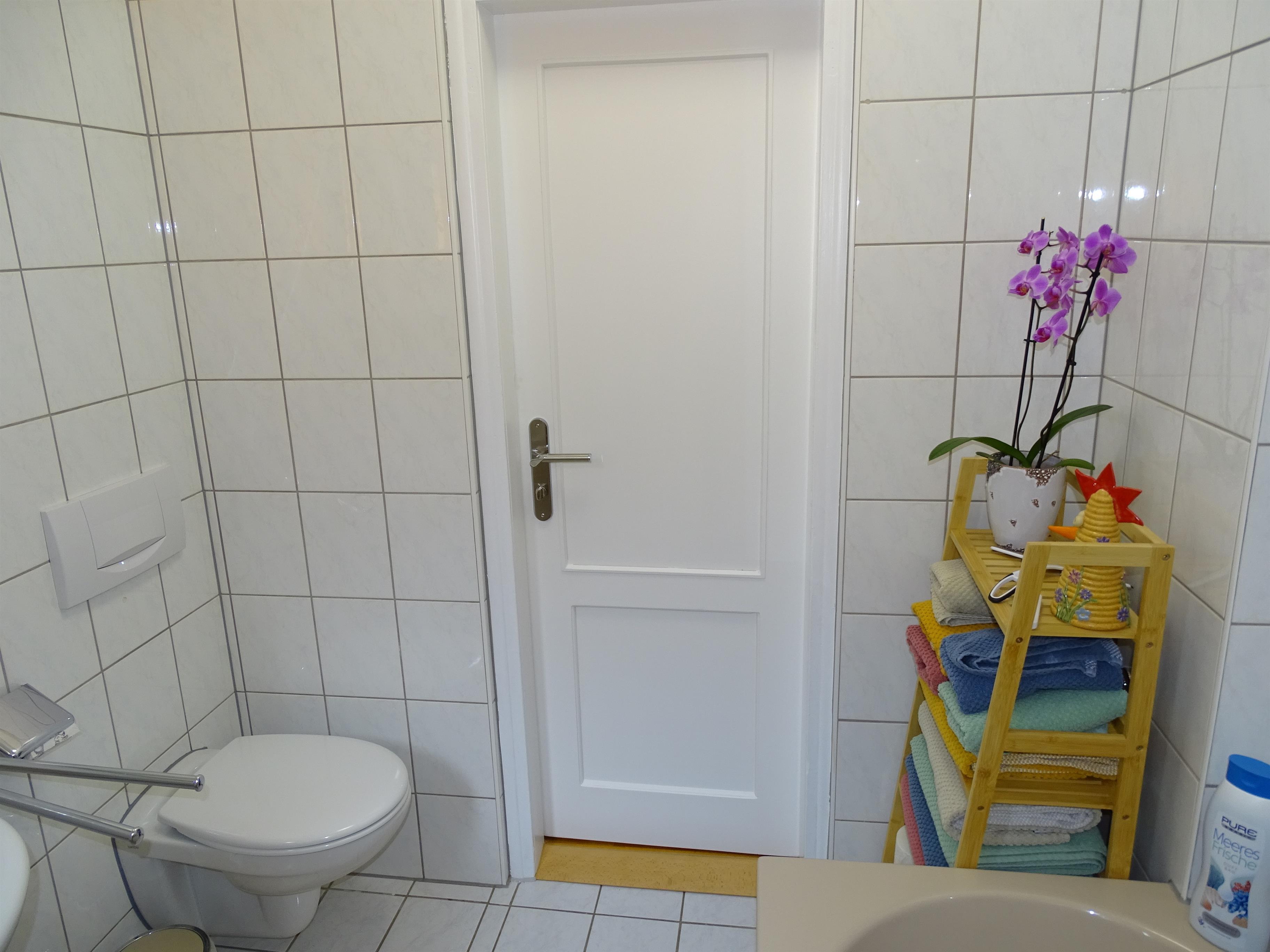 Weiterhin weist die Ferienwohnung ein Tageslicht-Bad sowie eine separate voll eingerichtete Küche mit einem Esstisch und 5 Stühlen auf. In fast allen Räumen ist ein wohnliches Massivholz-Parkett vorhanden; wir bitten daher um das Mitbringen und Benutzen von Hausschuhen. Im grünen Außenbereich gibt es eine überdachte Sitz- und Grillmöglichkeit.