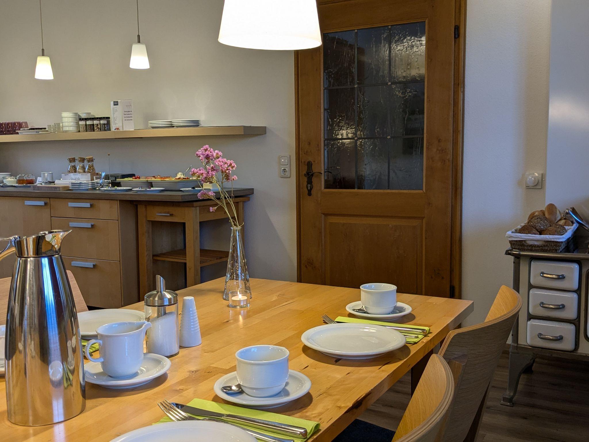 Ankommen und zu Hause fühlen in einer der 5 individuell und modern gestalteten Ferienwohnungen. Frühstücksbuffet ist für 12,50 Euro je Person und Tag auf Anfrage zubuchbar (ab 01.01.2026 13,50€). Gerne bringen wir Ihnen aber auch das Frühstücksgebäck an die Ferienwohnung.