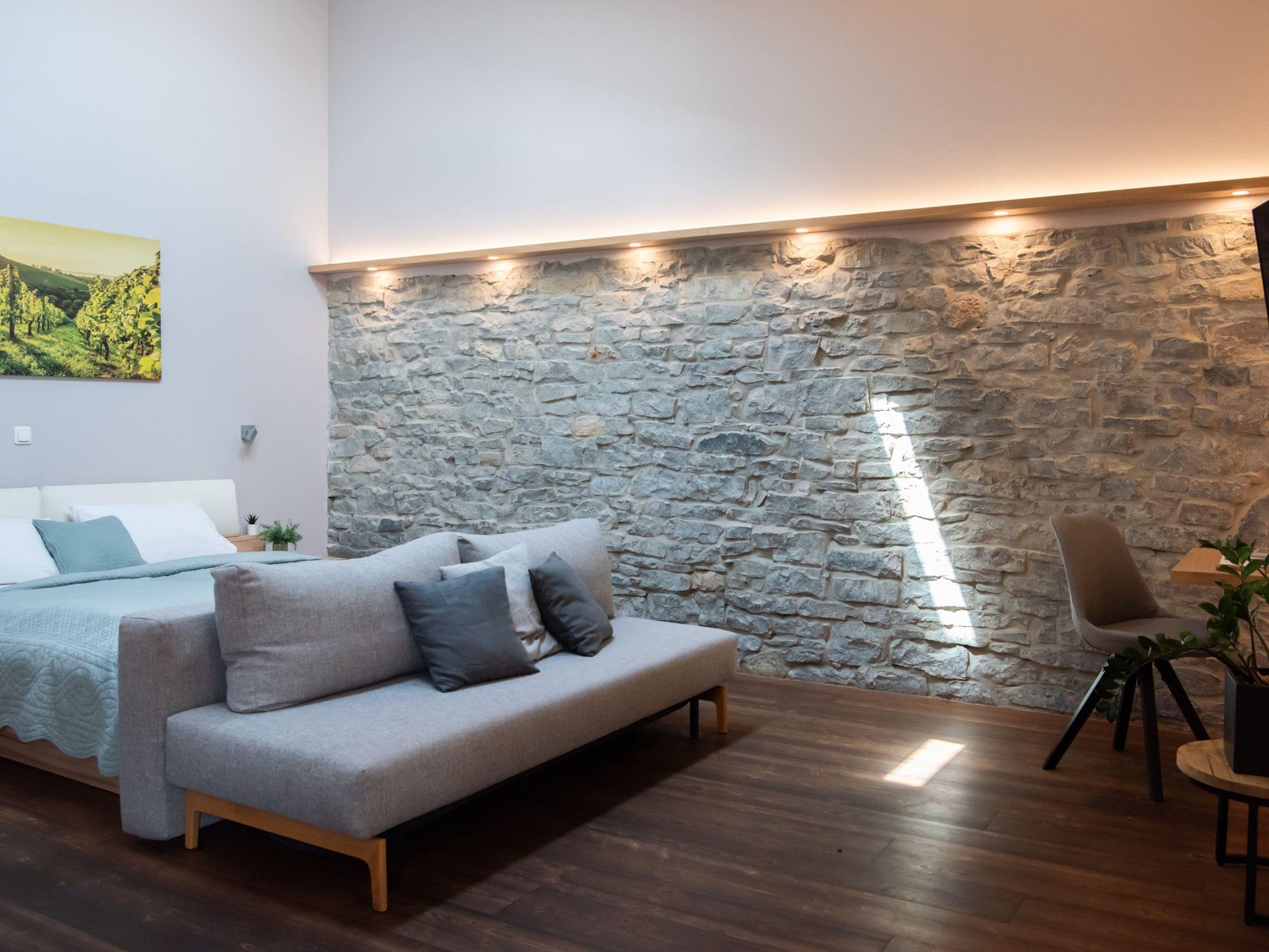 Etwas großzügiger sind unsere 4 Premium Doppelzimmer mit einem Doppelbett, einer Sitzecke und teilweise mit freigelegter Steinwand. Jedes Premium Doppelzimmer hat ein geräumiges Bad mit Dusche und einen angrenzenden Balkonbereich (Veranda) mit 2 Stühlen und einem kleinen Tisch. Alle 4 Zimmer befinden sich in der 1. Etage.